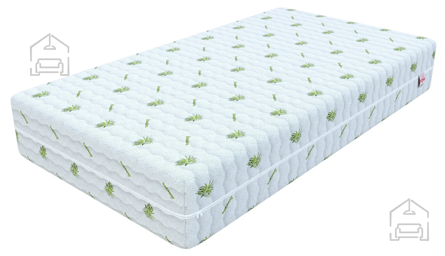 Auf einer Seite befindet sich profilierter, hochelastischer HR-Schaum, der gleichmäßige Unterstützung für alle Körperzonen bietet. Die andere Seite besteht aus sogenanntem „Noppenschaum“, dessen unregelmäßige Struktur die Muskulatur und Haut stimuliert, die Durchblutung anregt und Druckstellen vorbeugt. Zusätzlich enthält eine Seite eine Kokosfaserschicht, die die Matratze fester macht und die Luftzirkulation verbessert. Durch die verwendeten Materialien ist die MORK-Matratze besonders atmungsaktiv und antiallergisch – so wird das Wachstum von Mikroorganismen, die Allergien auslösen, wirksam eingeschränkt.