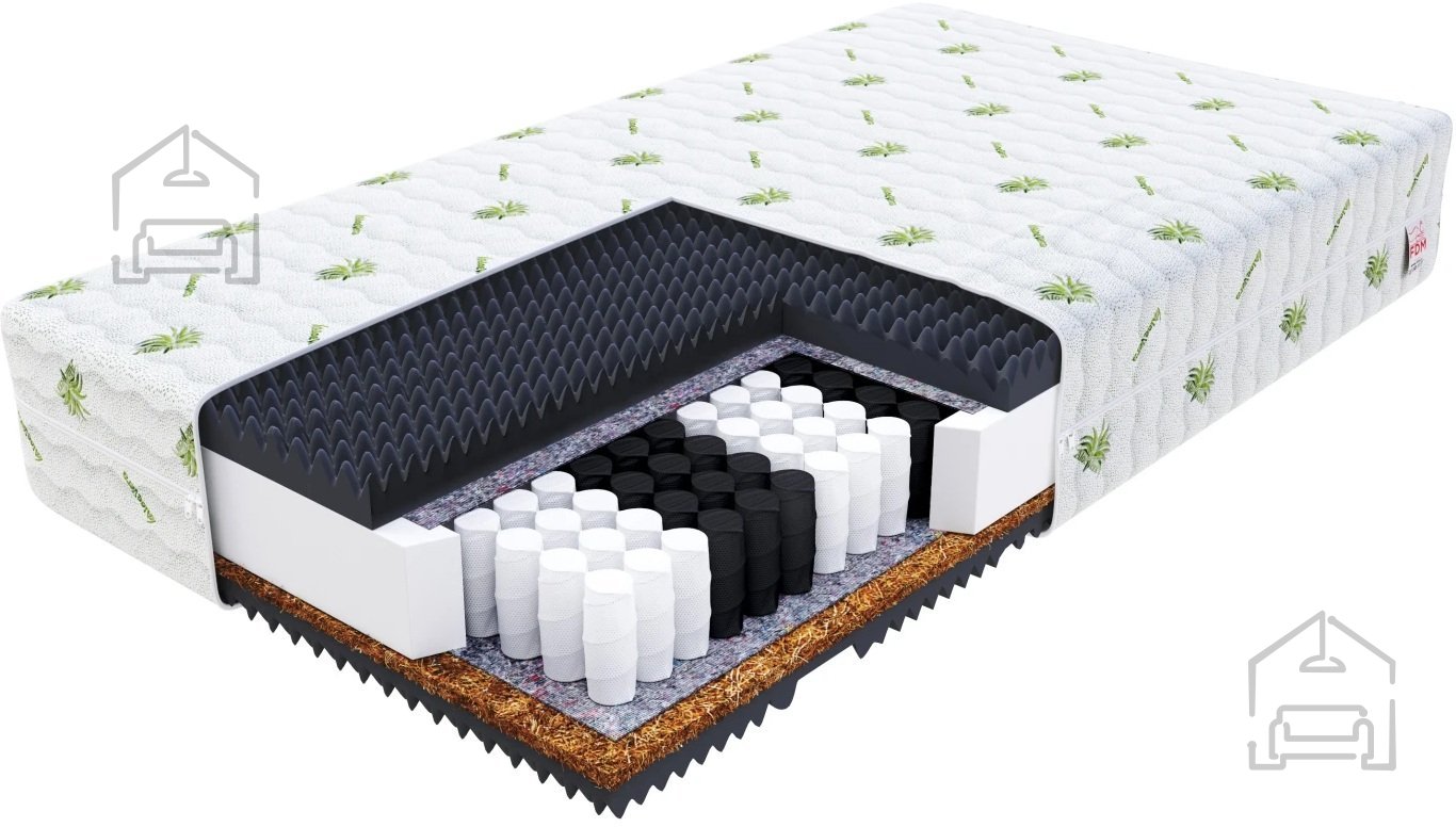 Im Kern befinden sich 7-Zonen-Taschenfedern, die einzeln in Stofftaschen vernäht sind und unterschiedliche Elastizität aufweisen. So wird jeder Körperbereich – vom Kopf und Nacken über Schultern, Lenden, Becken bis zu Oberschenkeln, Waden und Füßen – optimal gestützt. Zwischen den Federn und den Polyurethanschichten liegt eine schützende Polsterlage, die Beschädigungen verhindert. Die seitlichen Kanten bestehen aus luftdurchlässigem Schaum, der die Belüftung zusätzlich verbessert.
