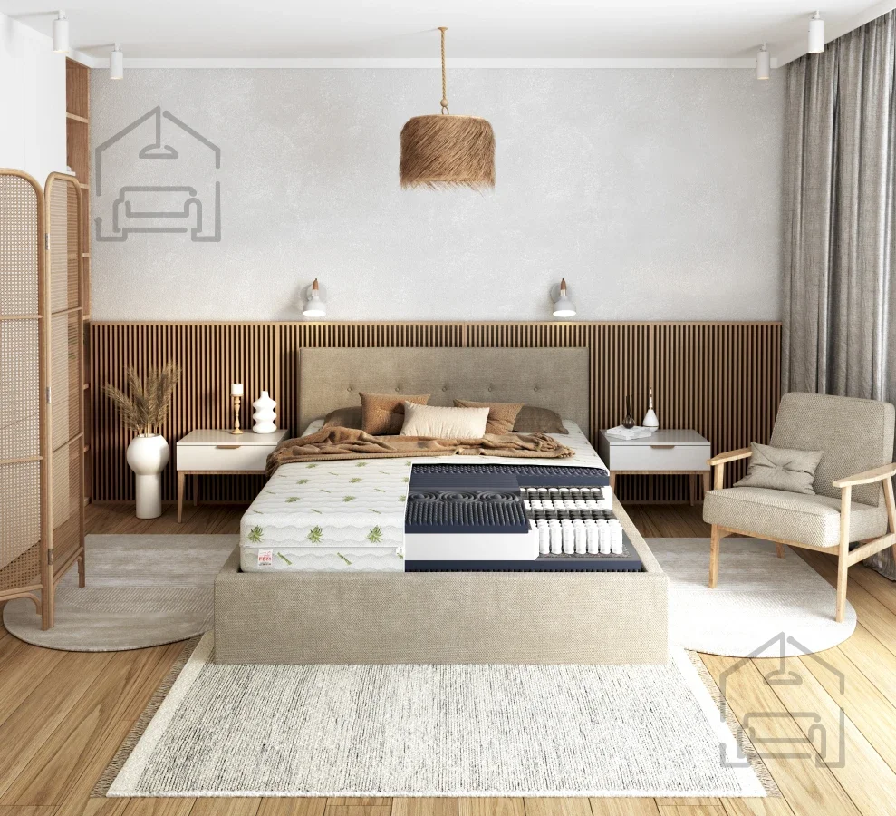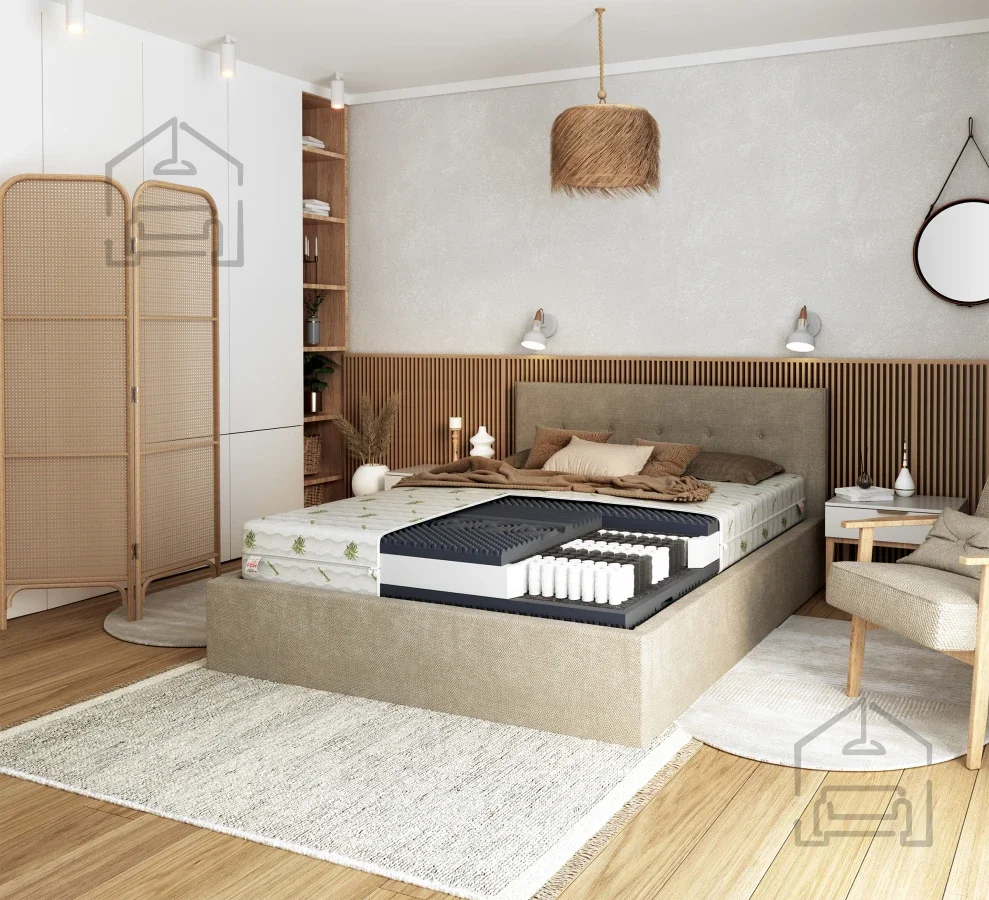 Hochwertiger Schaum dient als zusätzliche Polsterung der Matratze. Er ist besonders widerstandsfähig gegen Verformung und Biegung, passt sich dem Körper gut an, ist atmungsaktiv, elastisch und federnd. Der hochwertige Schaum bietet ausgezeichnete Unterstützung für die Wirbelsäule und absorbiert Bewegungen sehr gut – ideal für Paare, die empfindlich auf Bewegungen des Partners reagieren.