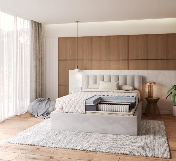 Der Taschenfederkern der Matratze LUMINO wird von mehreren Schaumschichten umgeben. Eine besonders widerstandsfähige und elastische Polyurethanschaum-Schicht bietet dabei zusätzliche Stabilität. Auf der einen Seite sorgt Latexschaum für ein langlebiges, elastisches und zugleich atmungsaktives Liegegefühl – dank seiner perforierten Struktur. Auf der anderen Seite befindet sich der thermische BUBBLEGUM-Schaum mit einer höheren Dichte von V45, der als besonders komfortabel gilt. Durch Körperwärme und Gewicht passt sich der Schaum exakt den Konturen des Körpers an und sorgt für erholsamen Schlaf. Der Matratzenkern ist mit einem hochwertigen SILVERCARE-Bezug ummantelt, der aus strapazierfähigem, dehnbarem und zugleich angenehm weichem sowie atmungsaktivem Material gefertigt ist und mit Silberfäden veredelt wurde.