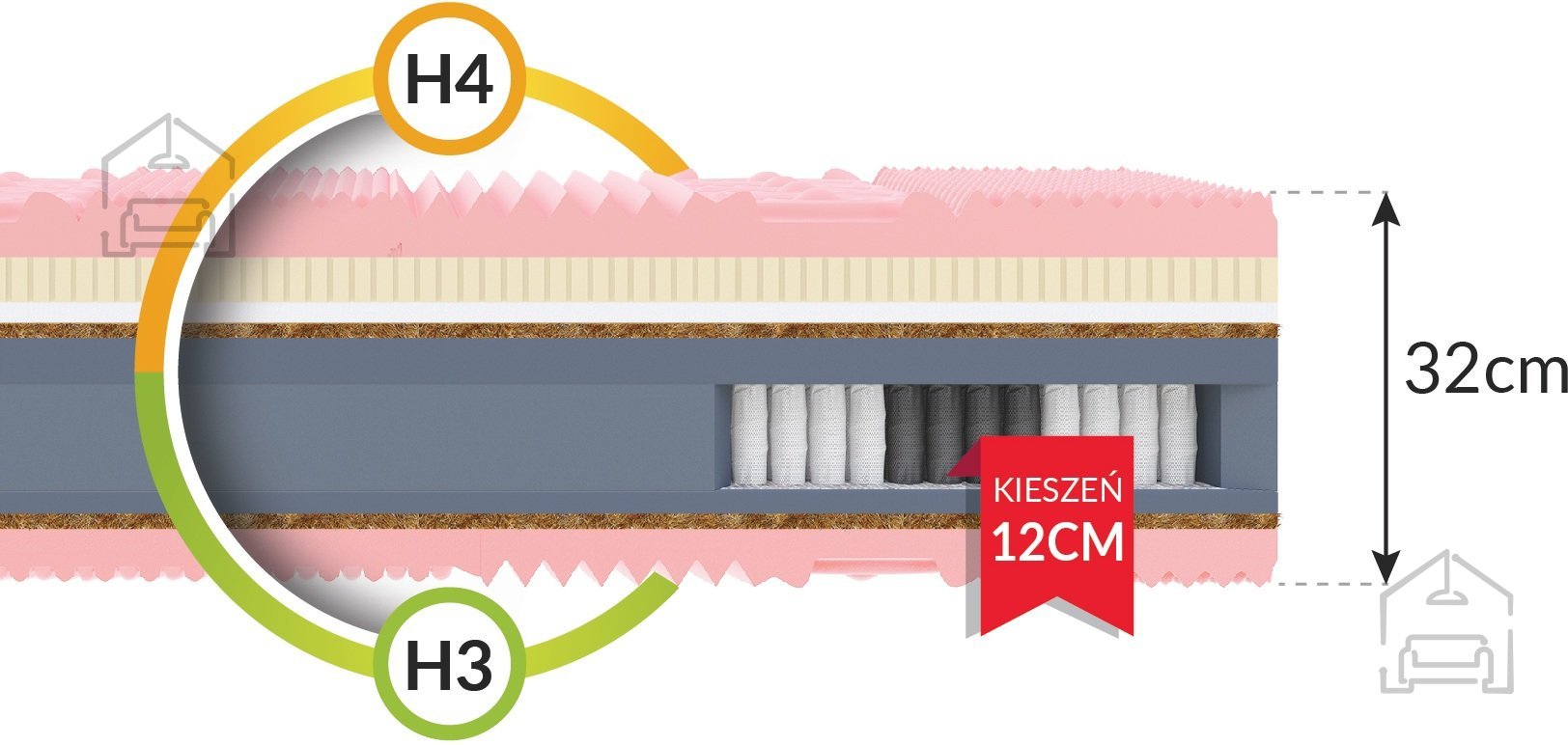 Die Multipocket-Matratze CALYPSO ist ein echtes Highlight im Sortiment der Marke FDM. Dieses Premium-Modell wird besonders von Menschen geschätzt, die beim Schlafen höchsten Komfort erwarten. Dank der sorgfältig ausgewählten Materialien und der durchdachten Konstruktion zählt die CALYPSO derzeit zu den besten Modellen auf dem polnischen Markt. Die mittelfeste Matratze wird zu Ihrer treuen Begleiterin für erholsamen Schlaf und Wohlbefinden.