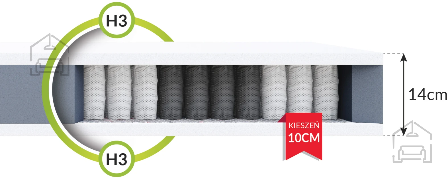 Der Bezug mit Membranstruktur wird aus hochwertigen Materialien erster Klasse gefertigt und bietet außergewöhnliche Weichheit, Frische sowie hohen Komfort beim Schlafen. Die spezielle Struktur sorgt für optimale Luftzirkulation und Belüftung innerhalb der Matratze. Gleichzeitig schützt der Bezug vor dem Eindringen von Schmutz, Bakterien, Pilzen, Schimmel und Milben. Dank des eingenähten Reißverschlusses lässt sich der Bezug leicht abnehmen und waschen.