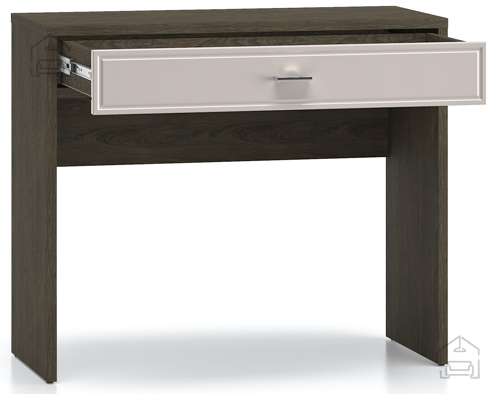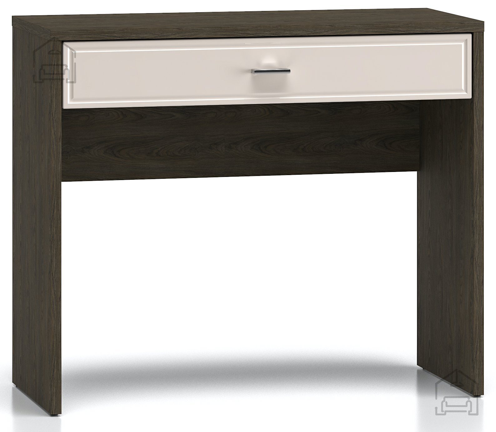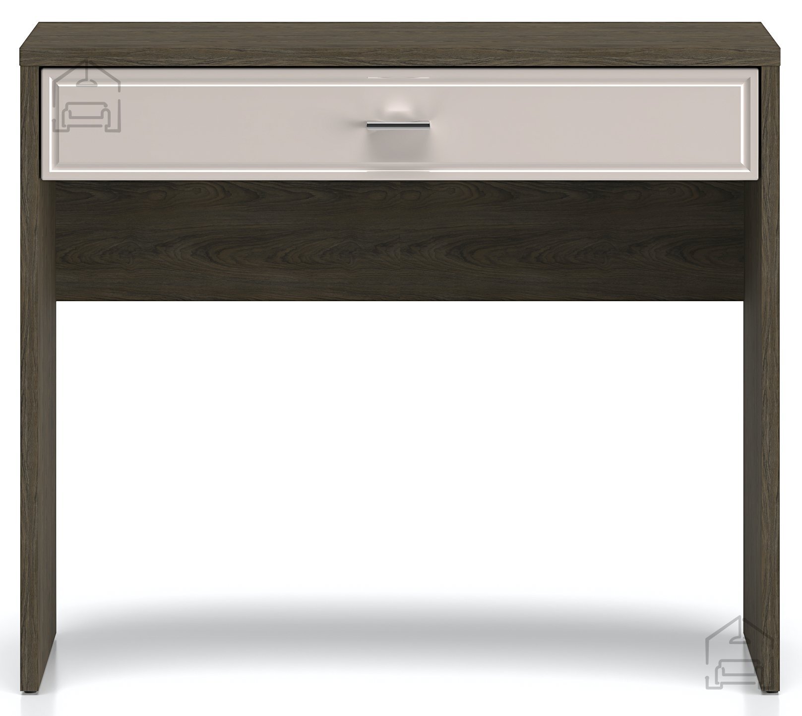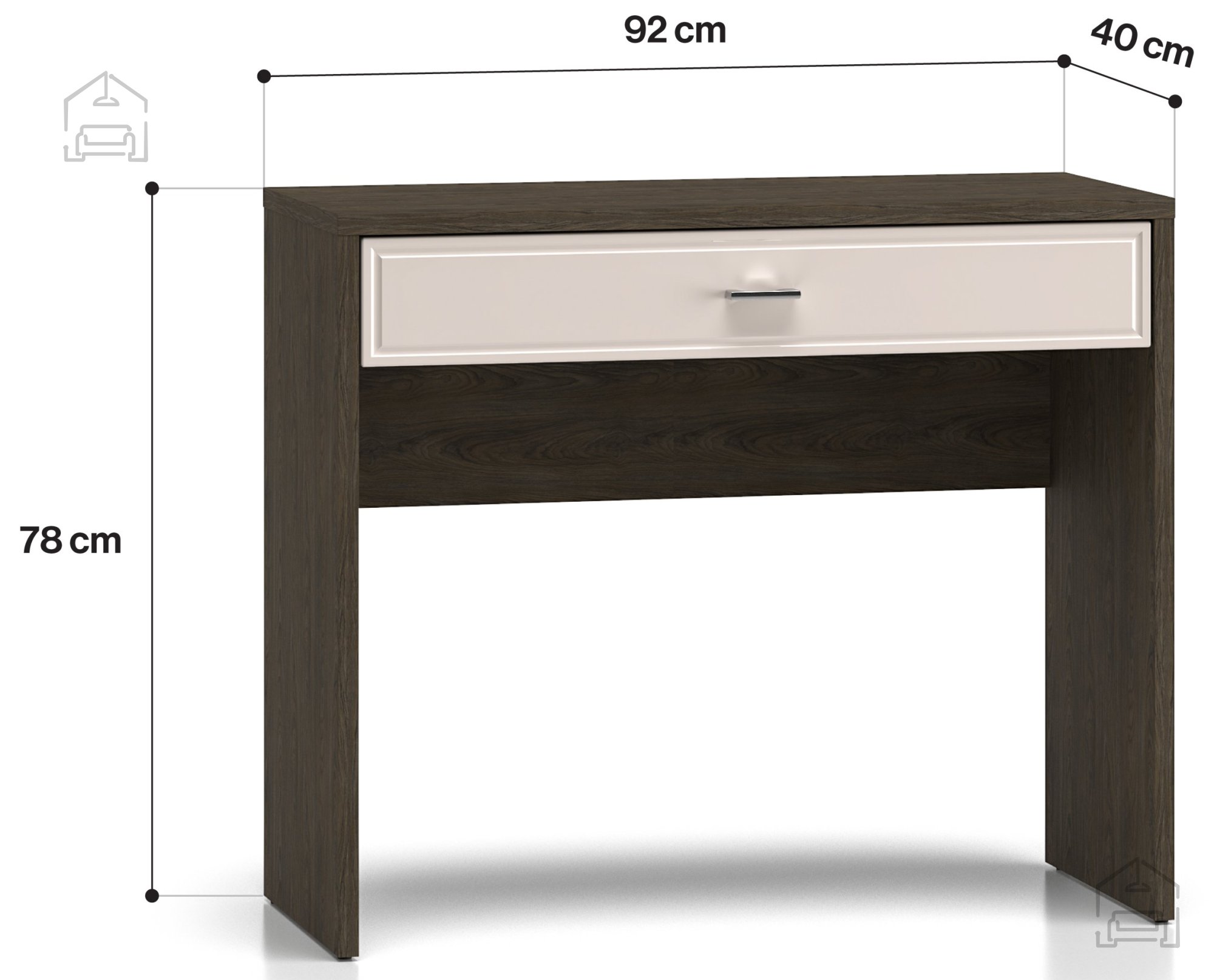 Der Konsolentisch Avante besteht aus hochwertigem MDF und laminierten Spanplatten, die eine lange Haltbarkeit und einfache Pflege gewährleisten. Mit einer Front in Kaschmirglanz und einem Korpus in Eiche Windmill Dark bringt dieser Tisch einen Hauch von Luxus in jeden Raum. Seine Maße von 154x40x55 cm sind ideal für den Einsatz im Flur, Wohnzimmer oder Büro.