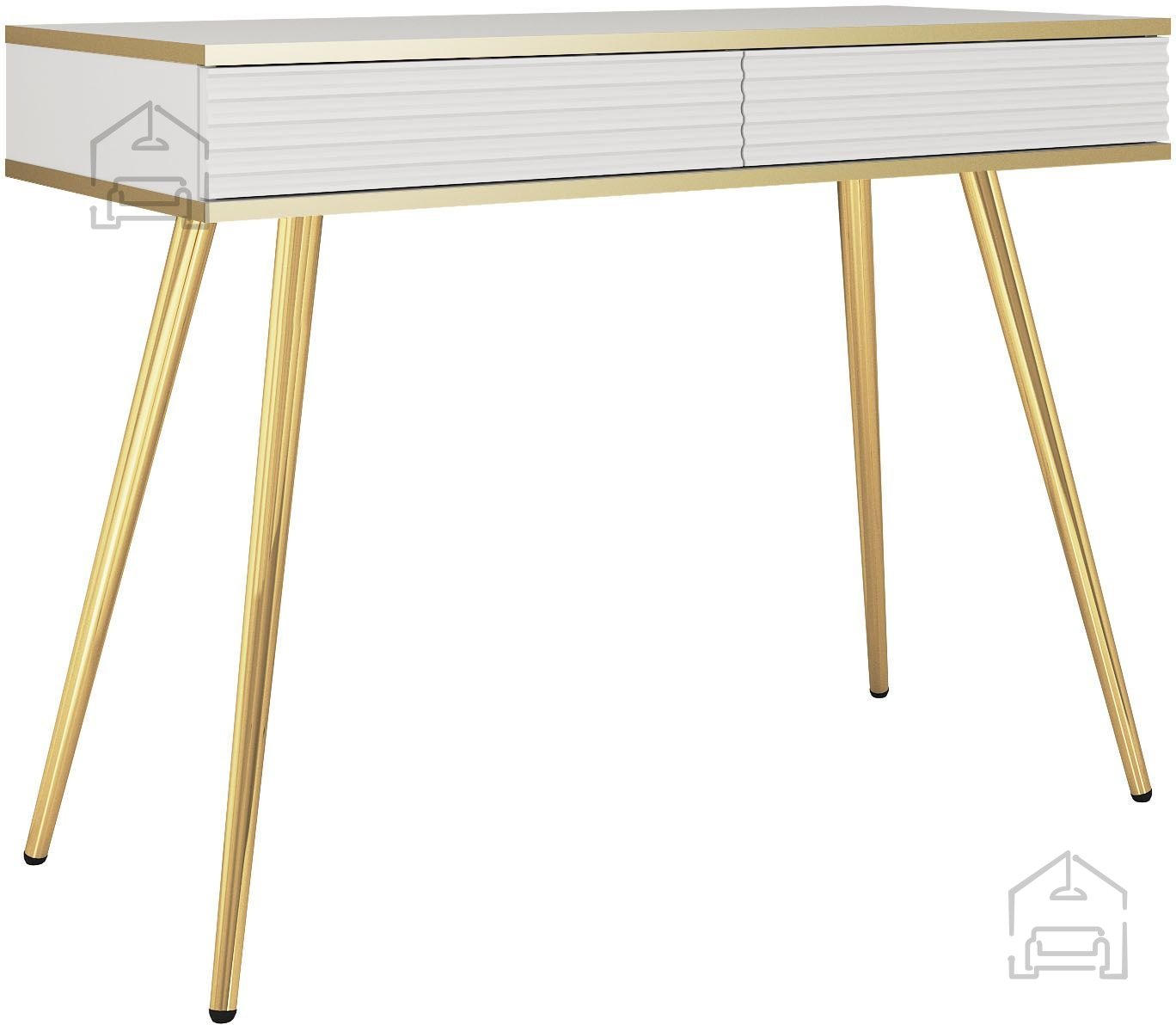 Entdecken Sie die besondere Kombination aus Stil und Funktionalität mit dem Schminktisch Oro. Das elegante Weiß und das hochwertige Design erfüllen all Ihre Wünsche. Gefertigt aus robustem MDF-Material, vereint dieser Tisch Langlebigkeit mit einem ansprechenden Erscheinungsbild – eine ideale Wahl für jedes moderne Zuhause.