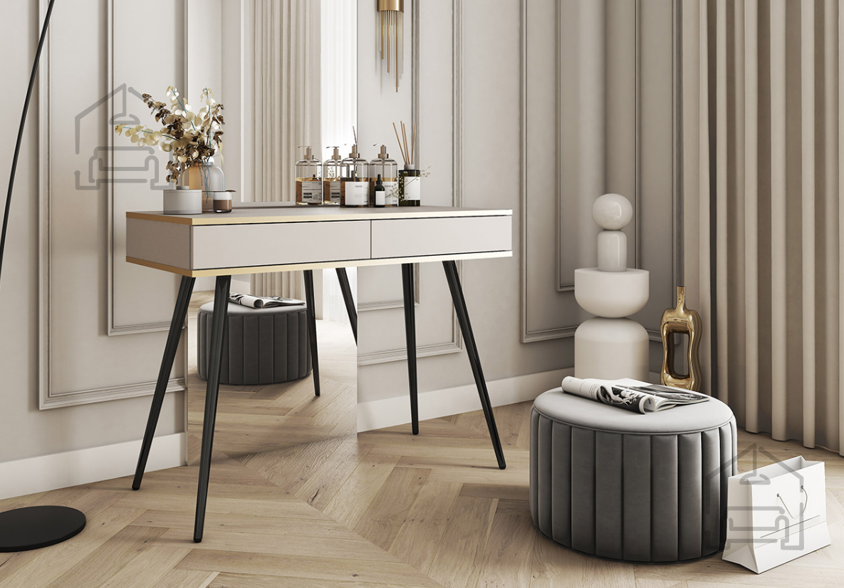 Ob Sie minimalistisches Design bevorzugen oder ein funktionales Möbelstück suchen, das Ihr Zuhause bereichert – der Schminktisch Oro ist die richtige Wahl. Sein modernes Erscheinungsbild und die praktische Gestaltung machen ihn zu einer lohnenden Investition, die Ihren Alltag verschönert und Freude bringt.
