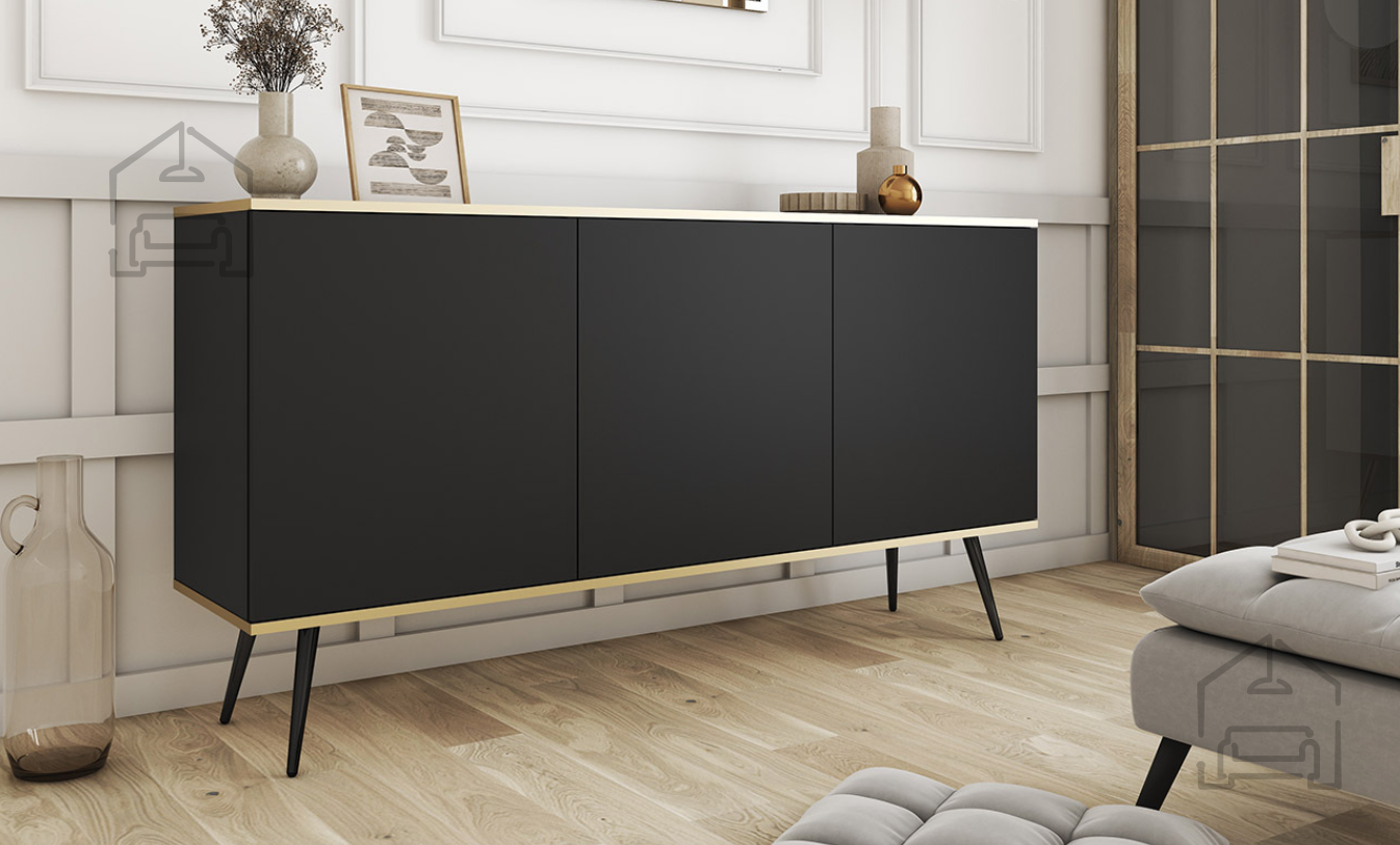Entdecken Sie die gelungene Verbindung von Stil und Alltagstauglichkeit mit der Kommode Oro K160. Dieses elegante schwarze Möbelstück aus hochwertigem MDF fügt sich harmonisch in Ihre Einrichtung ein und bietet gleichzeitig reichlich Stauraum. Mit ihrem schlichten, aber edlen Design ist die Oro K160 die perfekte Wahl für alle, die auf Funktion und Stil gleichermaßen Wert legen.