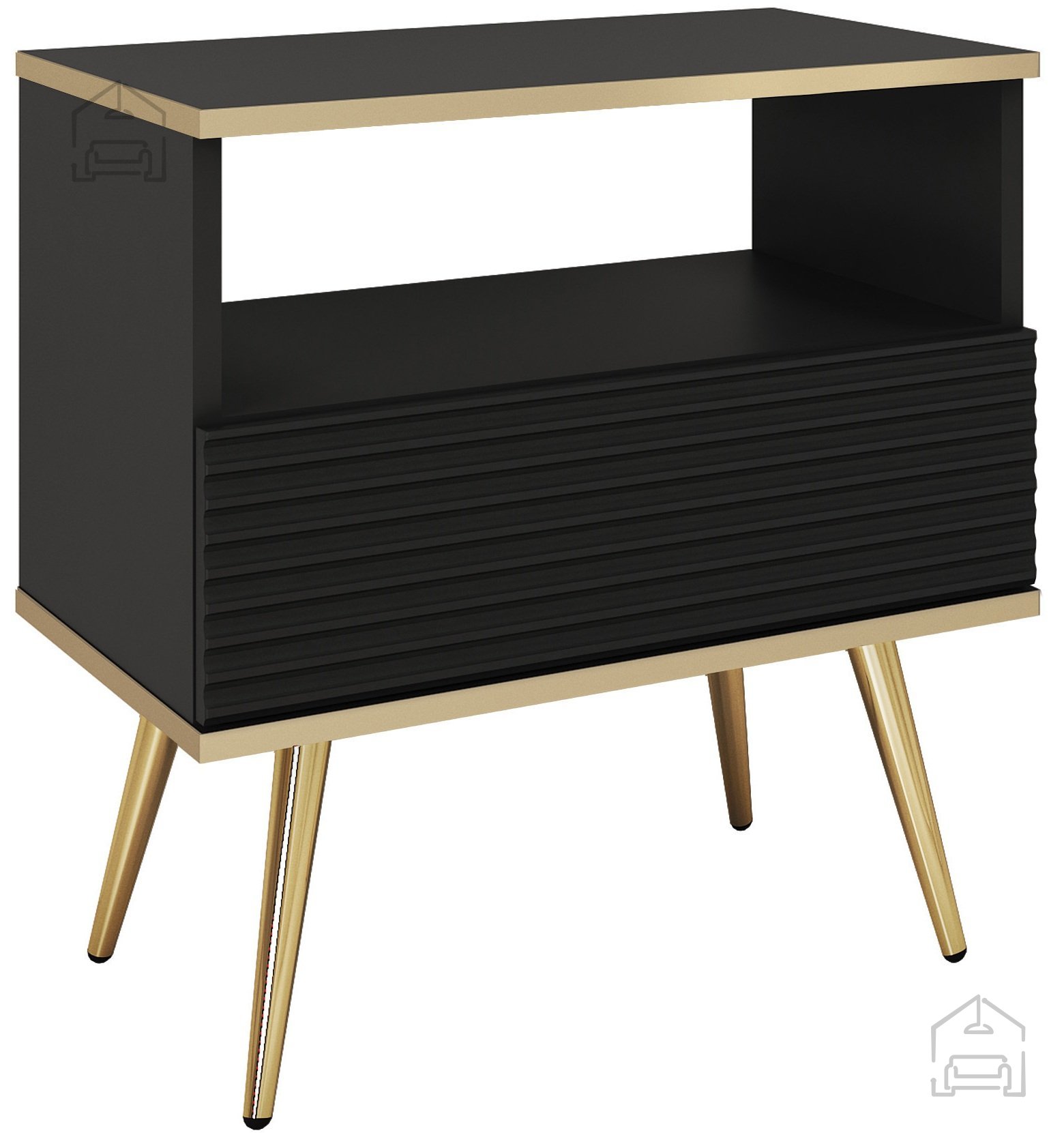 Der Nachttisch Oro wurde für alle entworfen, die Wert auf Ästhetik und praktische Nutzung legen. Mit den Maßen 54x39x59 cm passt er sich ideal Ihrem Raum an, ohne ihn zu überladen. Die neutrale schwarze Farbe lässt sich mühelos mit verschiedensten Einrichtungsstilen kombinieren – von minimalistisch bis klassisch.