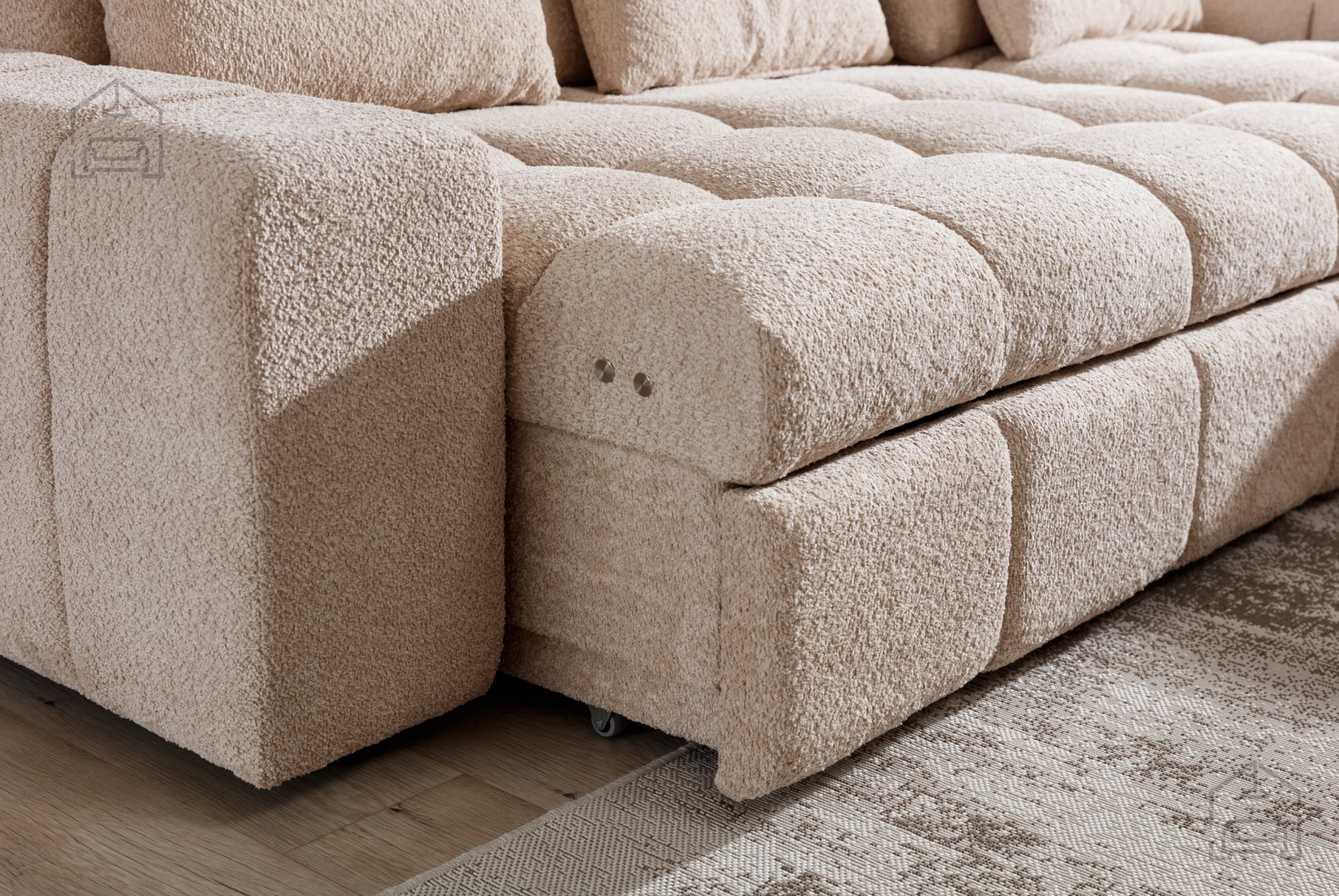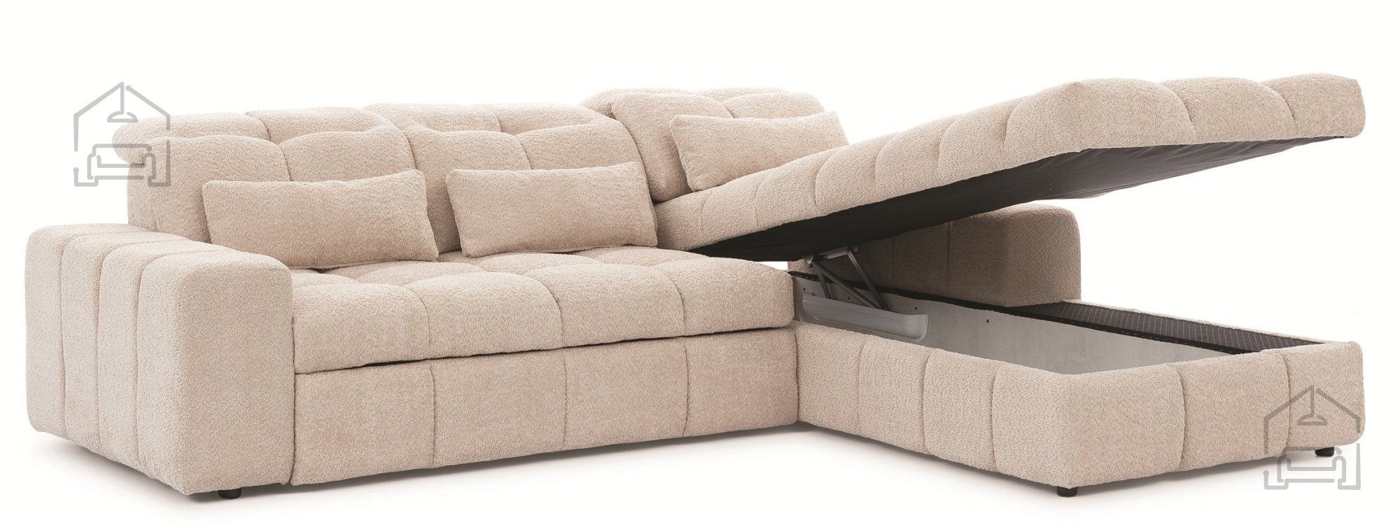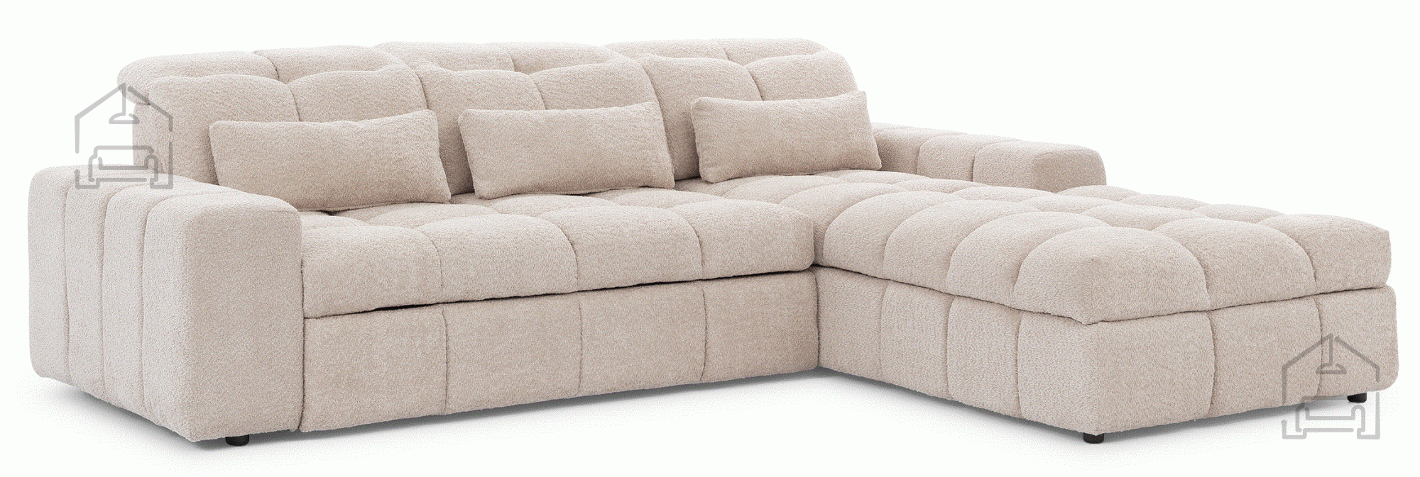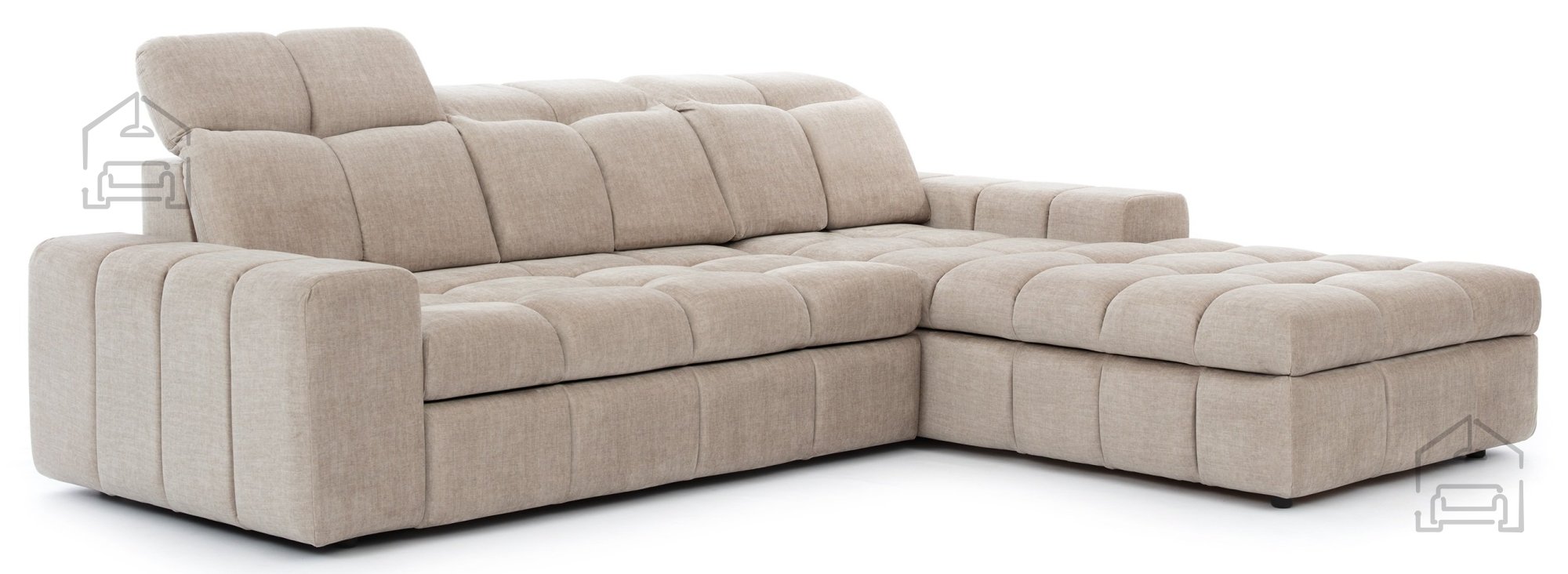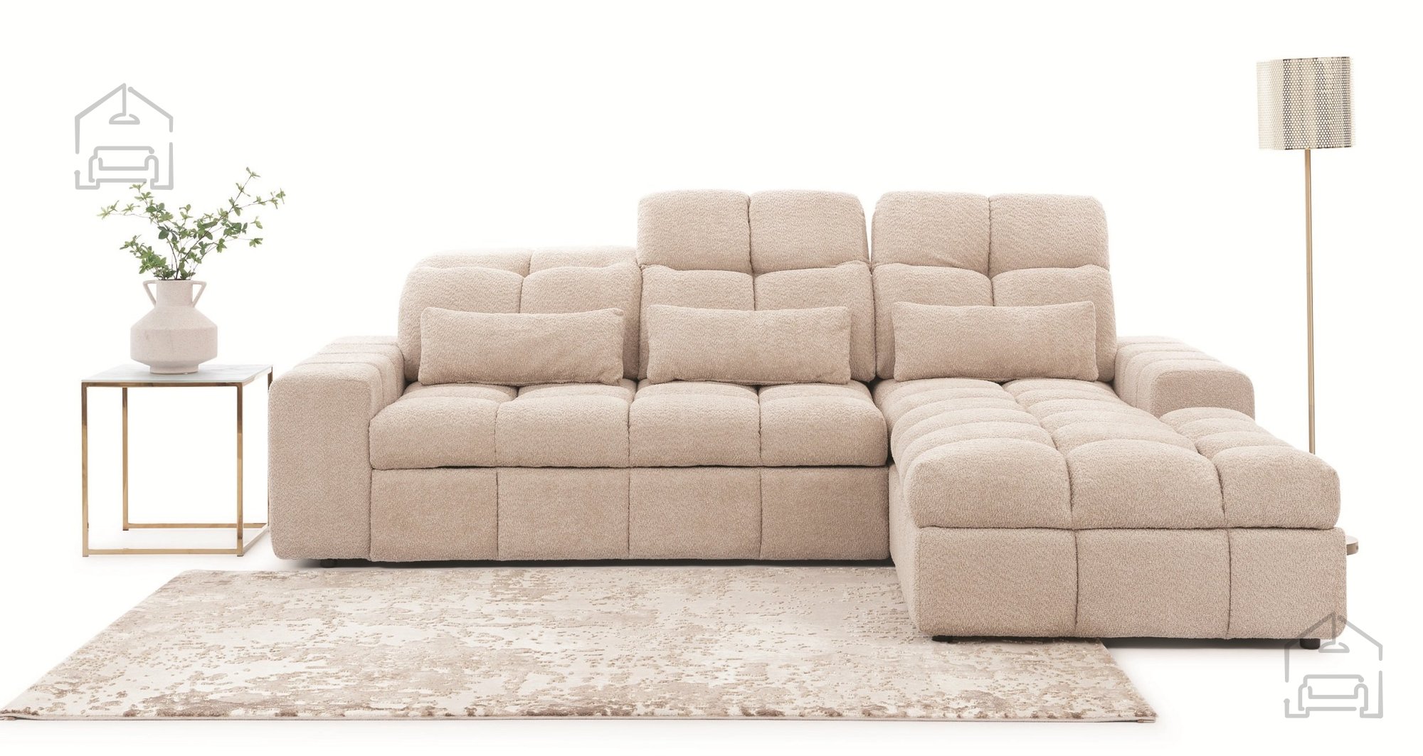 Die Materialien, die bei der Herstellung von Sofas und Sitzgarnituren verwendet werden, sind verschiedene Arten von Polyurethanschäumen, Synthepon, Viscolatex usw. Es handelt sich um Produkte mit hohem Kompressions- und Elastizitätskoeffizienten, daher behält sich der Hersteller das Recht auf eine negative und positive Toleranz von +/- 2% in Breite und Länge vor.
