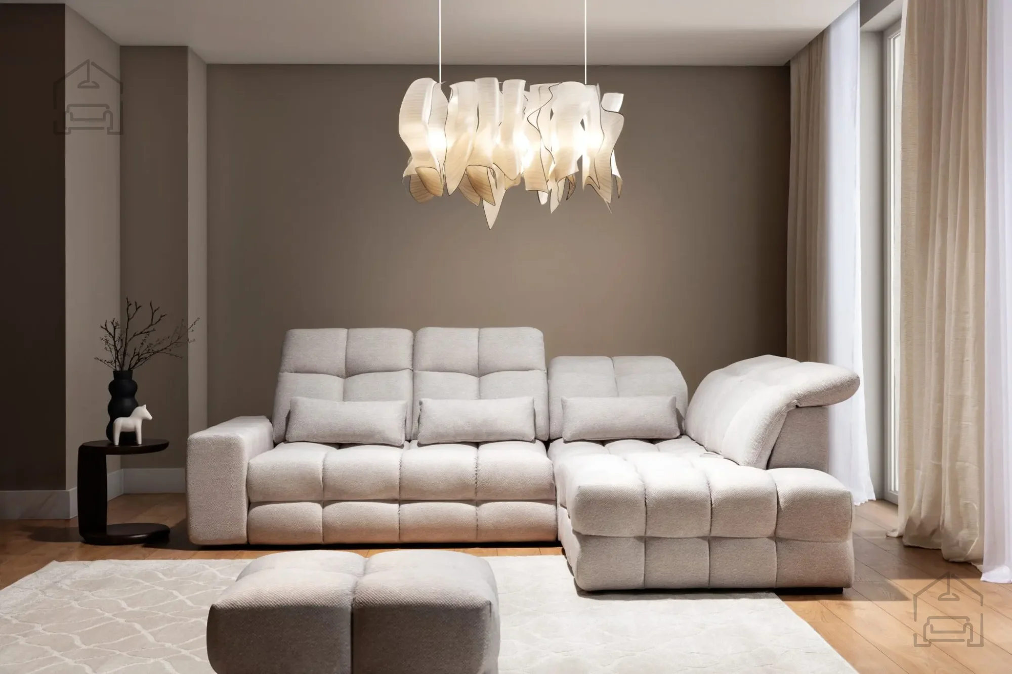 Die bei der Herstellung von Sofas und Sitzgarnituren verwendeten Materialien sind verschiedene Arten von Polyurethanschaum, Synthepon, Viscolatex usw.; es handelt sich um Produkte mit einem hohen Kompressions- und Elastizitätskoeffizienten, daher behält sich der Hersteller das Recht auf eine negative und positive Toleranz von +/- 2 % in Breite und Länge vor.