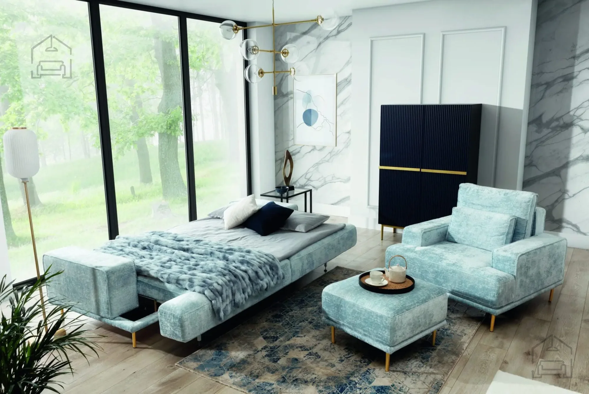 Nicole ist nicht nur ein elegantes Möbelstück, sondern auch äußerst praktisch. Mit dem eingebauten Euro-Mechanismus lässt sie sich leicht in ein geräumiges Bett mit den Maßen 198x140 cm verwandeln, was ideal für Gäste oder entspannte Wochenenden ist. Außerdem verfügt sie über eine praktische Bettkasten-Schublade, die eine ordentliche Aufbewahrung zusätzlicher Decken und Kissen ermöglicht.