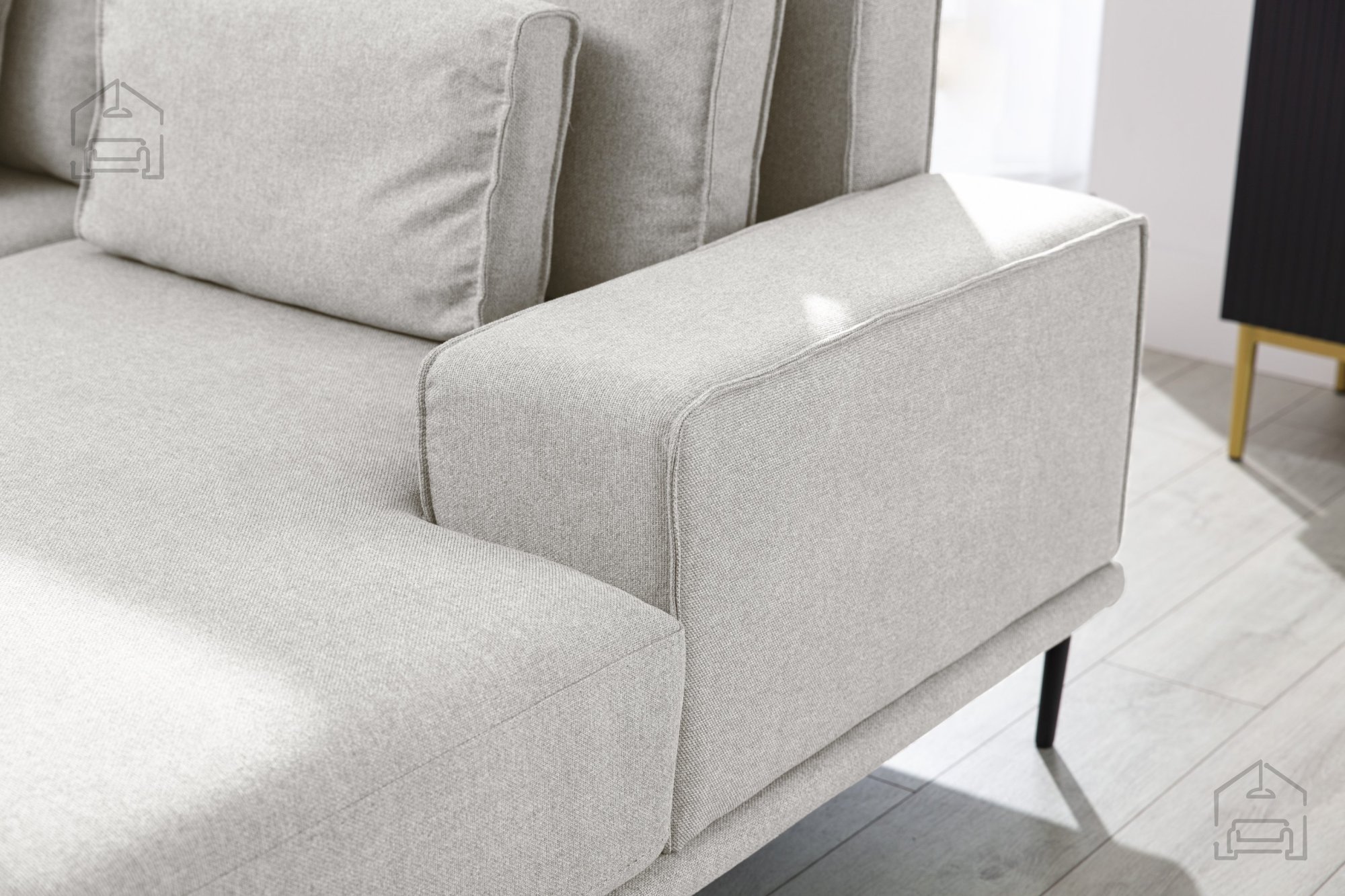 Die Ecksofa-Garnitur Nicole Mini zeichnet sich durch ein modernes Design aus, das sich mühelos in verschiedene Einrichtungsstile einfügt. Hergestellt aus hochwertigen Materialien wie Holz, Spanplatte und Stoff, garantiert sie Haltbarkeit und eine lange Lebensdauer. Der Stoff Raven 22, der auf dem Bild verwendet wird, verleiht Ihrem Wohnzimmer einen Hauch von Eleganz und Luxus. Wenn Sie nach mehrfarbigen Optionen suchen, bietet Ihnen Nicole Mini eine breite Palette von Farben, damit sie perfekt zu Ihrem persönlichen Stil passt.