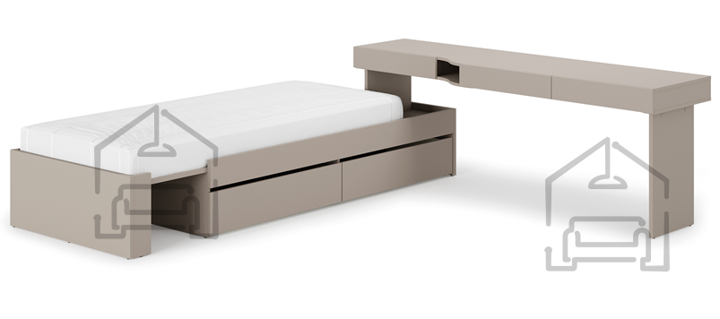 Woow - SET-03P ist für Jugendliche im Alter von 12 bis 18 Jahren konzipiert und erfüllt vollständig ihre täglichen Bedürfnisse. Mit dem integrierten Schreibtisch erhalten Teenager einen Platz zum Lernen und Hausaufgabenmachen, während der Platz für Laptop, Bücher und Zubehör ein organisiertes Leben ermöglicht. Das komfortable Bett mit einer Matratze in voller Größe sorgt für einen qualitativ hochwertigen Schlaf, der für Wachstum und Entwicklung entscheidend ist.