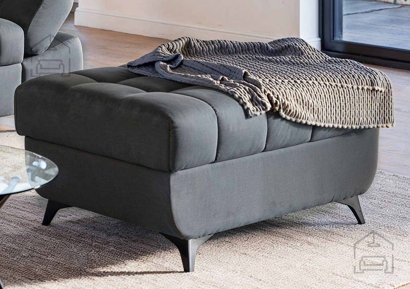 Der Hocker Valoris ist aus hochwertigen Materialien gefertigt, die eine lange Lebensdauer und außergewöhnlichen Komfort gewährleisten. Der Rahmen aus Holz und Spanplatte ist mit dem Stoff Zetta 305 bezogen, der für seine Haltbarkeit und ästhetische Attraktivität bekannt ist. Die Metallbeine in elegantem Schwarz, 10 cm hoch, verleihen einen modernen Touch, während sie Stabilität und Tragfähigkeit bis zu 150 kg gewährleisten.