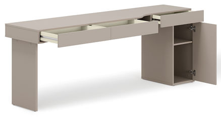 Einer der Hauptschwerpunkte des Sets Woow - SET-05L ist sein ergonomisches Design, das eine bequeme Nutzung gewährleistet. Mit den Maßen 211x55x79 cm bietet es ausreichend Platz für alle Aktivitäten Ihres Kindes. Die große Arbeitsfläche ermöglicht eine einfache Nutzung eines Computers, das Schreiben von Hausaufgaben oder das Schaffen von Kunstwerken. Mit drei Schubladen und zwei Regalen steht genügend Stauraum für Bücher, Hefte und persönliche Gegenstände zur Verfügung, was das Zimmer ordentlich und organisiert hält.