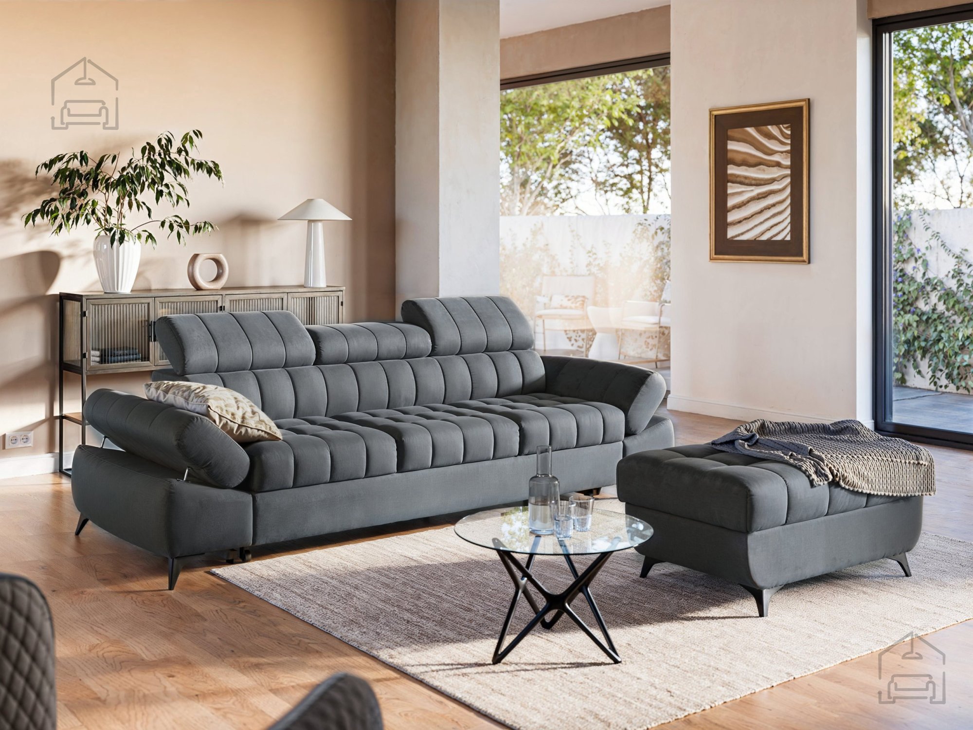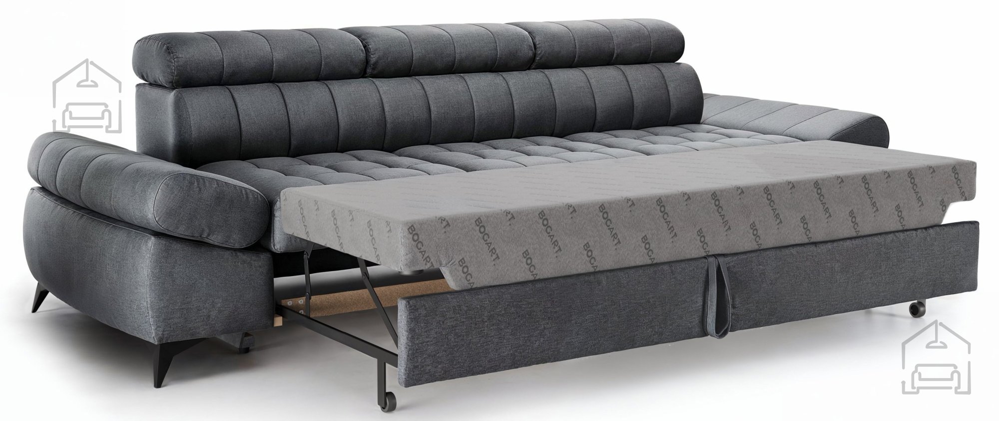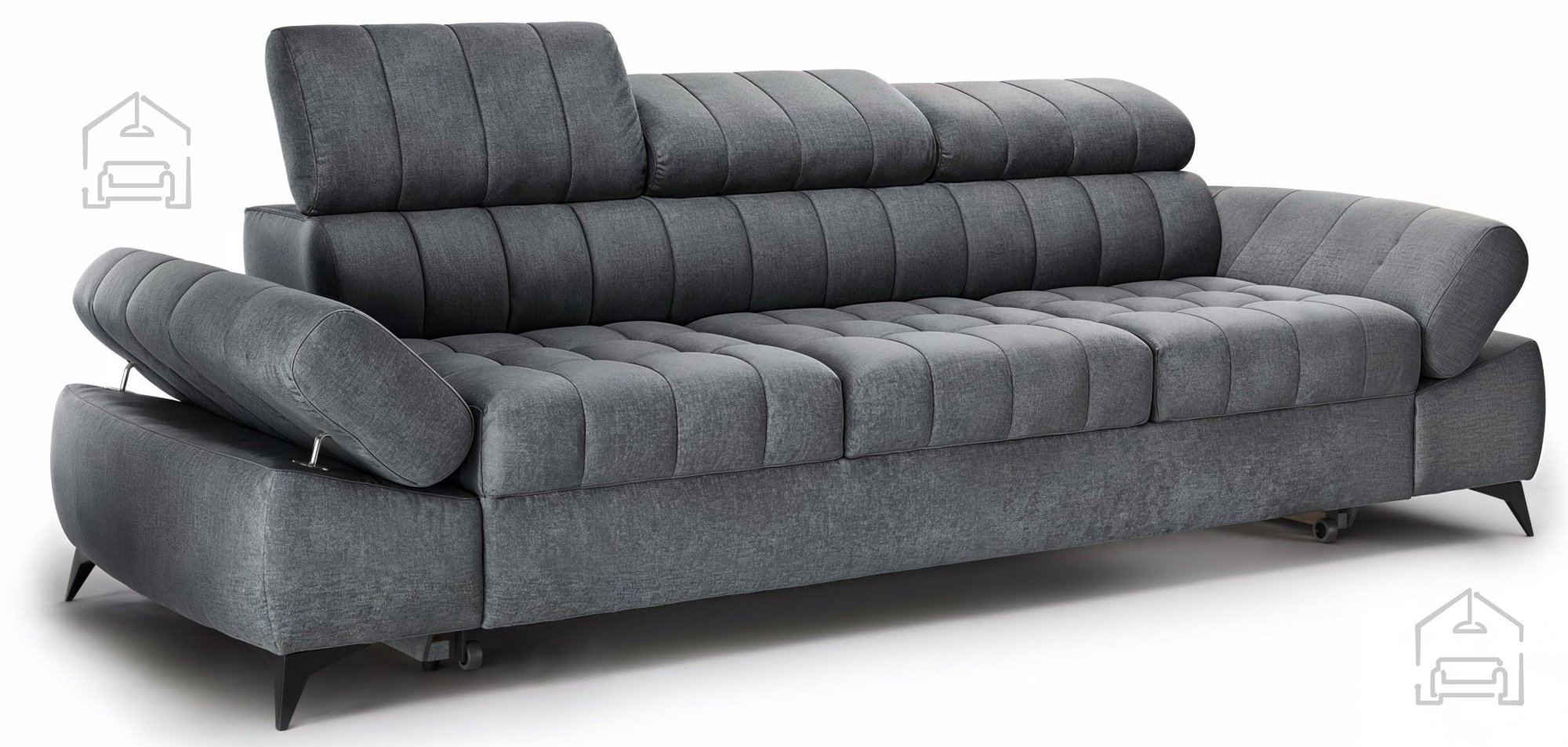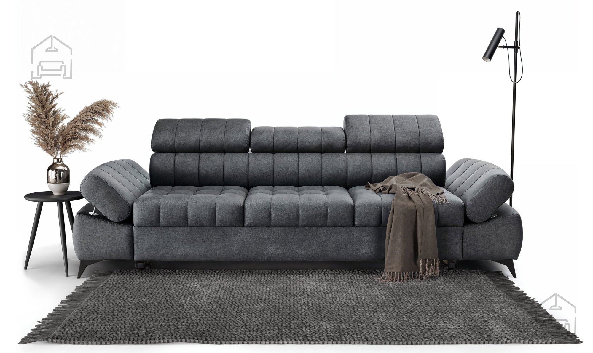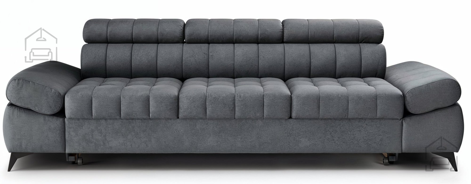 Einer der Hauptvorteile des Dreisitzers Valoris ist seine Anpassungsfähigkeit. Mit verstellbaren Kopfstützen und Armlehnen kann sich jeder Benutzer seinem Komfort anpassen. Der Dolphin-Mechanismus ermöglicht eine schnelle und einfache Umwandlung in ein bequemes Bett mit einer Liegefläche von 186x124 cm, ideal für Gäste oder entspannte Nachmittagsschläfchen.