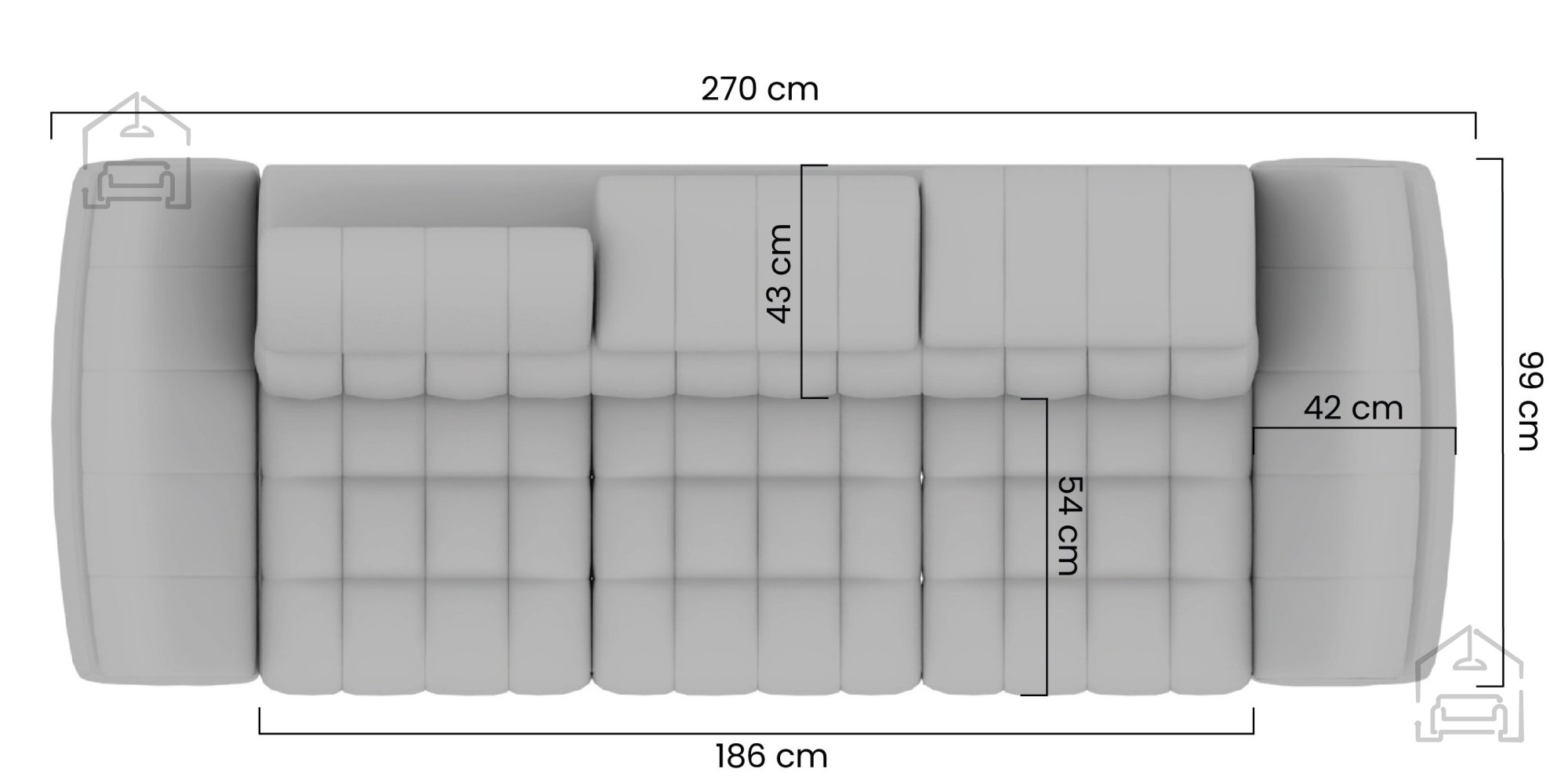 Die bei der Herstellung von Sofas und Sitzgarnituren verwendeten Materialien sind verschiedene Arten von Polyurethanschaum, Synthepon, Viscolatex usw. Es handelt sich um Produkte mit einem hohen Kompressions- und Elastizitätskoeffizienten, daher behält sich der Hersteller das Recht auf eine negative und positive Toleranz von +/- 2% für Breite und Länge vor.