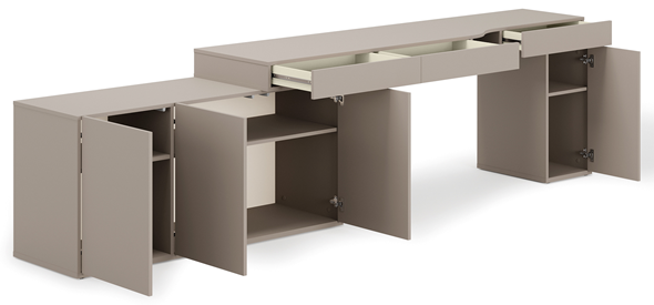 Wenn Sie Möbel suchen, die Ihrem Teenager kreativen Ausdruck ermöglichen und gleichzeitig Ordnung und Organisation bewahren, ist das Set Woow - SET-06L die richtige Wahl. Seine Abmessungen von 321x55x79 cm sind ideal für die meisten Jugendzimmer und ermöglichen eine optimale Raumnutzung.
