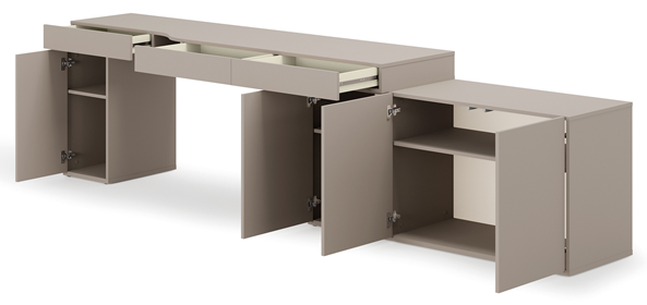 Wenn Sie Möbel suchen, die Ihrem Teenager kreativen Ausdruck ermöglichen und gleichzeitig Ordnung und Organisation bewahren, ist das Set Woow - SET-06P die richtige Wahl. Seine Abmessungen von 321x55x79 cm sind ideal für die meisten Jugendzimmer und ermöglichen eine optimale Raumausnutzung.
