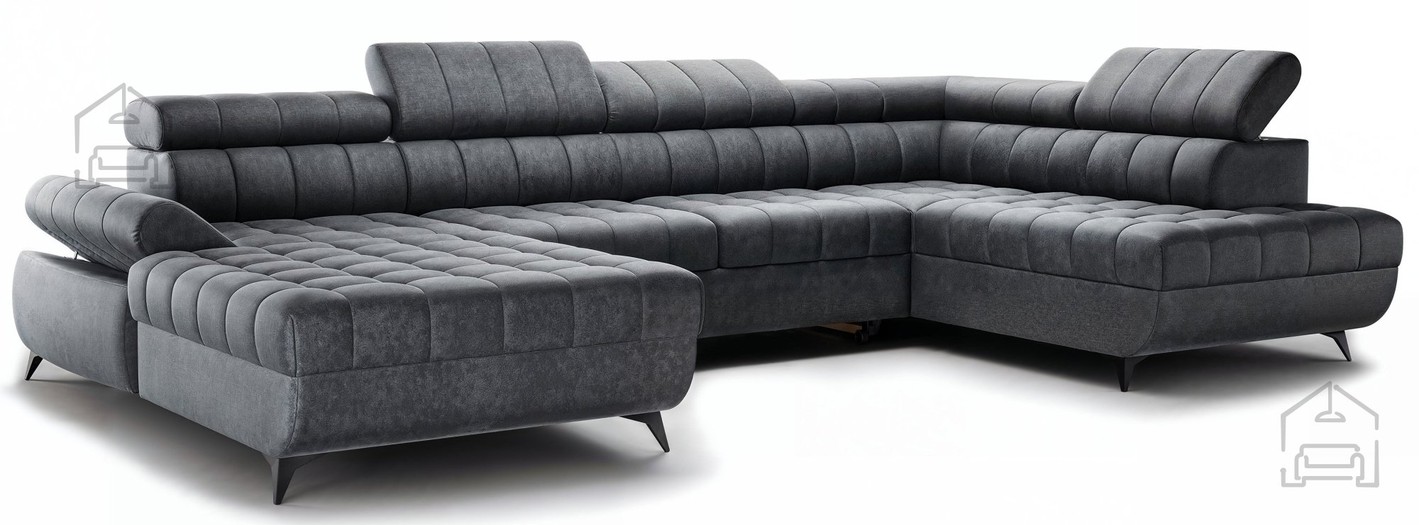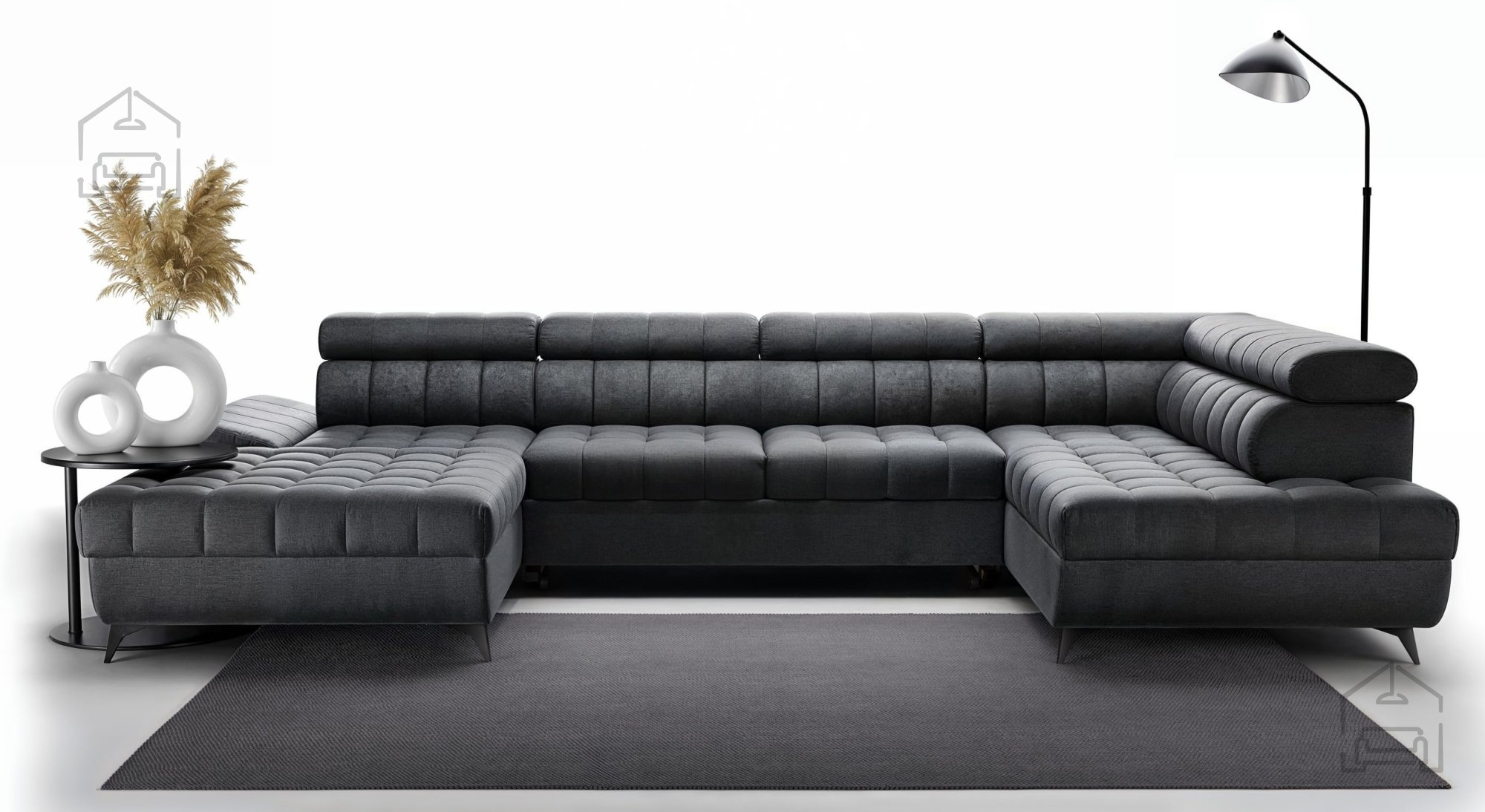 Die Wohnlandschaft Valoris U II ist die richtige Wahl für alle, die Komfort, Eleganz und Funktionalität in einem suchen. Mit ihren Abmessungen von 347x205x97 cm ist sie die ideale Lösung für größere Wohnzimmer, wo sie zum zentralen Möbelstück und Mittelpunkt des Familienlebens wird. Sie zeichnet sich durch einen modernen Stil aus, der durch elegante schwarze matte Metallfüße mit einer Höhe von 10 cm ergänzt wird, was ihr einen Hauch raffinierter Ästhetik verleiht.