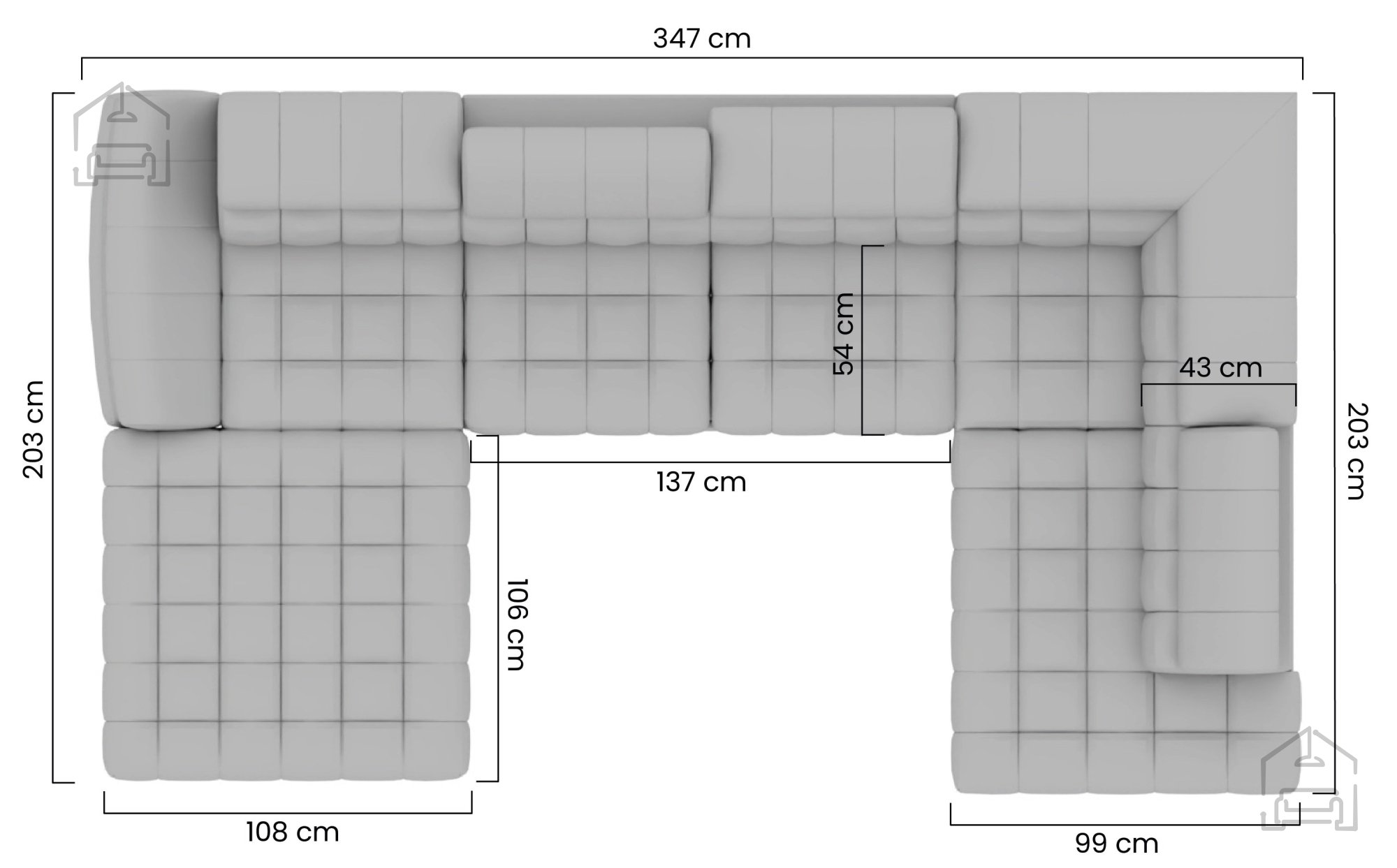 Die bei der Herstellung von Sofas und Wohnlandschaften verwendeten Materialien sind verschiedene Arten von Polyurethanschaum, Synthepon, Viscolatex usw. Es handelt sich um Produkte mit einem hohen Kompressions- und Elastizitätskoeffizienten, daher behält sich der Hersteller das Recht auf eine negative und positive Toleranz von +/- 2% in Breite und Länge vor.