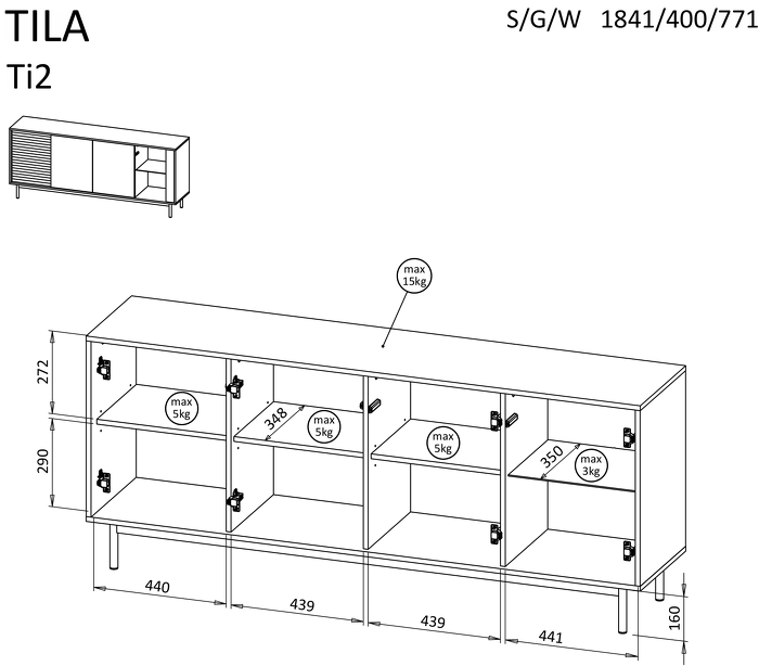 Dank ihrer Abmessungen und ihres Designs passt die Kommode Tila TI2 in jeden Raum Ihres Hauses.