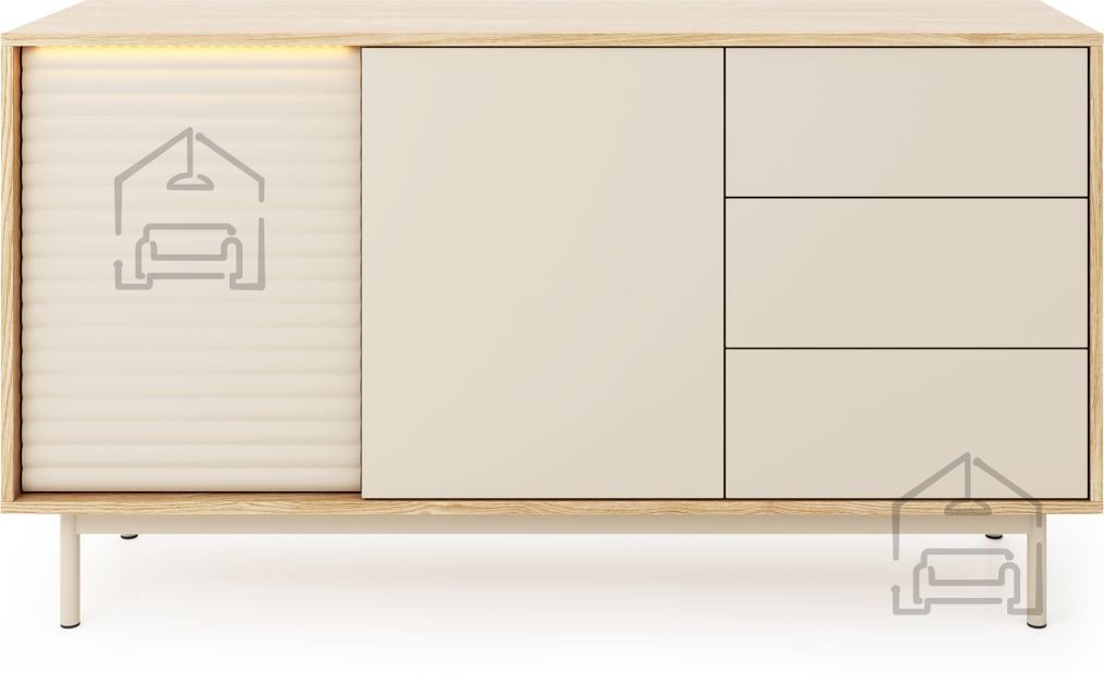 Die Kommode Tila TI3 ist aus hochwertiger Spanplatte gefertigt, die Haltbarkeit und eine lange Lebensdauer gewährleistet. Ihre eleganten Linien und die sorgfältig ausgewählte Farbkombination aus Kaschmir und geölter Eiche schaffen ein angenehmes und ruhiges Ambiente. Diese harmonische Farbpalette ermöglicht eine einfache Kombination mit den übrigen Möbeln und Accessoires in Ihrem Zuhause.