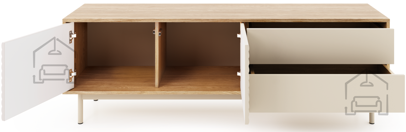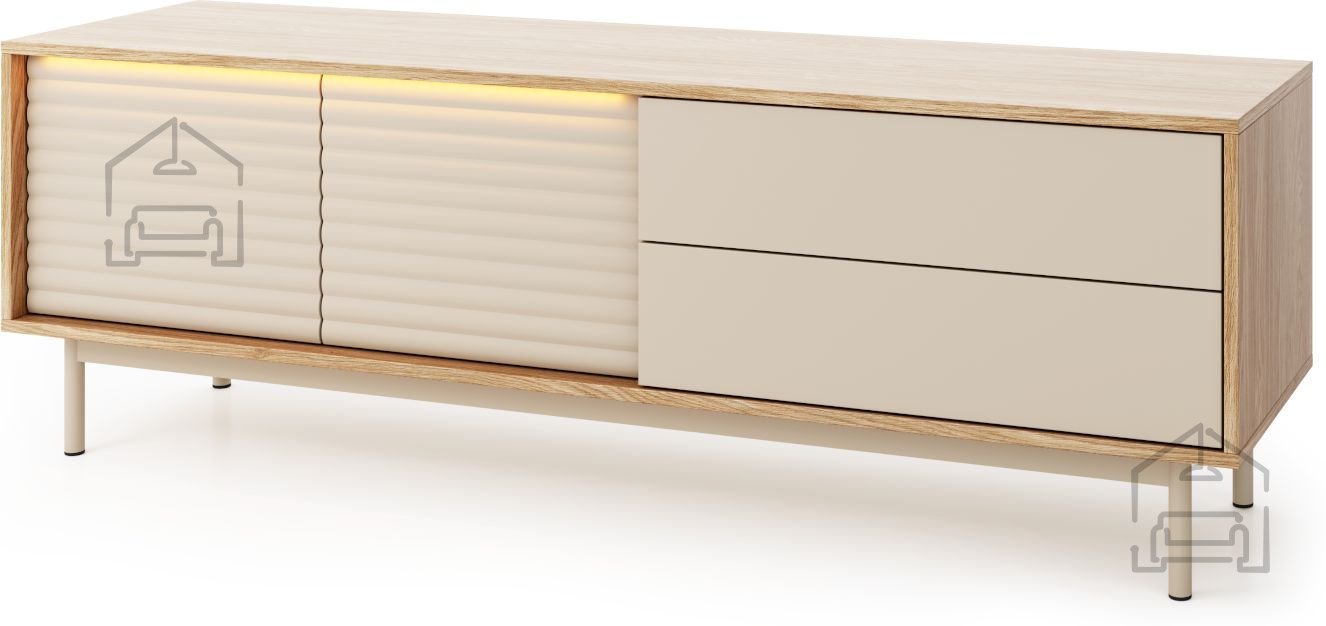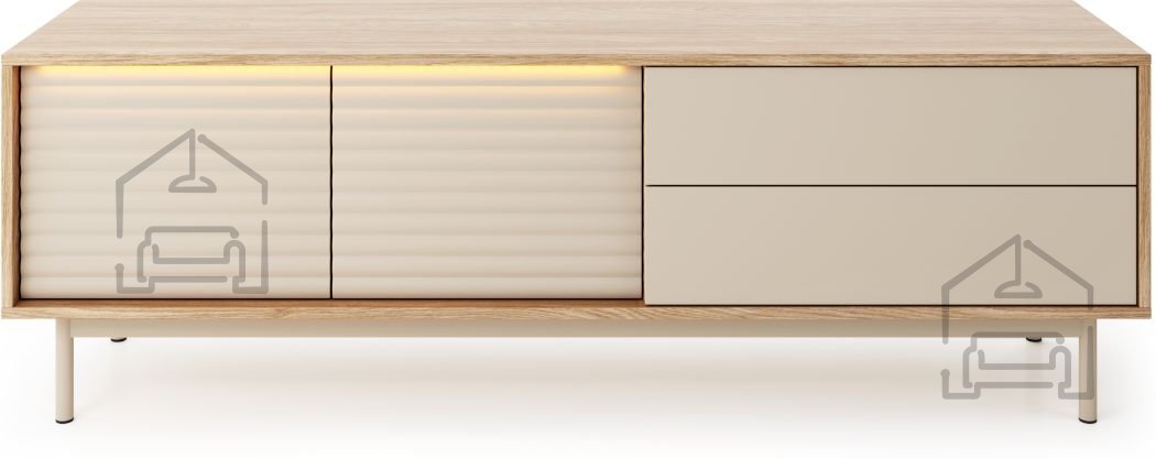Das TV-Sideboard Tila TI4 zeichnet sich durch die Maße 160.1x40x52.9 cm aus, was eine optimale Raumnutzung ermöglicht. Die Farbkombination aus Kaschmir und geölter Eiche verleiht ein modernes Aussehen, das sich mühelos in verschiedene Einrichtungsstile einfügt. Die Oberfläche aus Spanplatte sorgt für Langlebigkeit und einfache Pflege, was ideal für den täglichen Gebrauch ist.