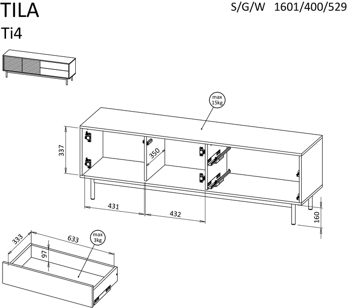 Entdecken Sie die perfekte Kombination aus Eleganz und Funktionalität mit unserem TV-Sideboard Tila TI4. Egal, ob Sie Ihr Wohnzimmer auffrischen oder einen Hauch von Luxus hinzufügen möchten, dieses Sideboard sorgt dafür, dass Ihr Zuhause immer im Trend bleibt. Hergestellt mit Leidenschaft in der polnischen Fabrik Dolmar, vereint dieses Produkt höchste Qualität mit zeitlosem Design.