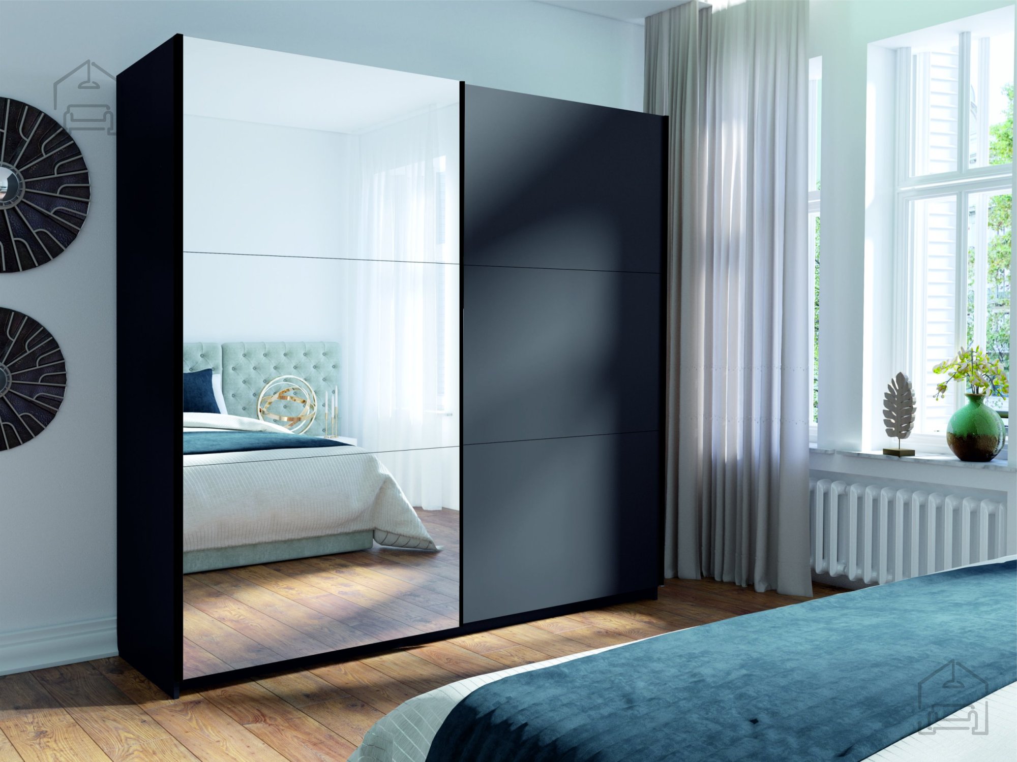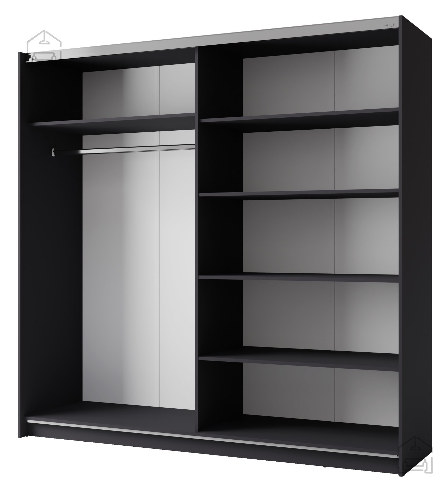 Einer der Hauptvorteile dieses Kleiderschranks sind seine Schiebetüren mit integriertem Spiegel. Dieses funktionale Design ermöglicht Ihnen die maximale Raumausnutzung, da die Schiebetüren keinen zusätzlichen Platz zum Öffnen benötigen. Der Spiegel vergrößert nicht nur optisch den Raum, sondern ermöglicht es Ihnen auch, sich schnell und einfach für den Tag vorzubereiten. So wird Ihre Morgenroutine noch effizienter.