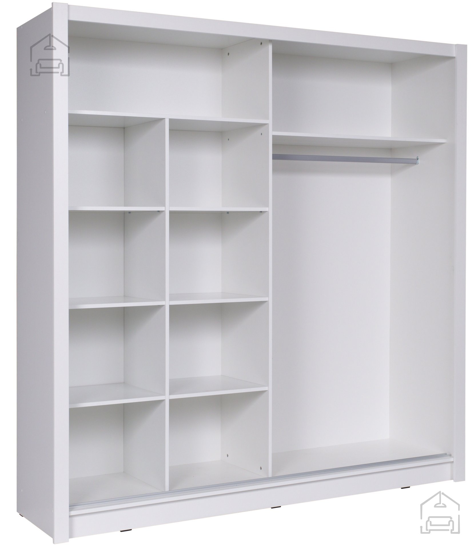 Mit den Maßen 155x62x215 cm ist der Kleiderschrank Baku 10 geräumig genug, um all Ihre Bekleidungsbedürfnisse aufzunehmen. Er ist aus hochwertiger laminierter Platte gefertigt, die Haltbarkeit und Kratzfestigkeit gewährleistet. Die weiße Farbe des Schranks ist zeitlos und lässt sich leicht mit verschiedenen Einrichtungsstilen kombinieren, was eine einfache Integration in jedes Zuhause ermöglicht. Einer der Hauptvorteile dieses Modells sind die Schiebetüren, die ein einfaches Öffnen und Schließen ermöglichen, ohne zusätzlichen Platz im Raum einzunehmen. Dies ist eine ausgezeichnete Lösung für kleinere Wohnungen oder Schlafzimmer, in denen jeder Zentimeter Raum wertvoll ist.