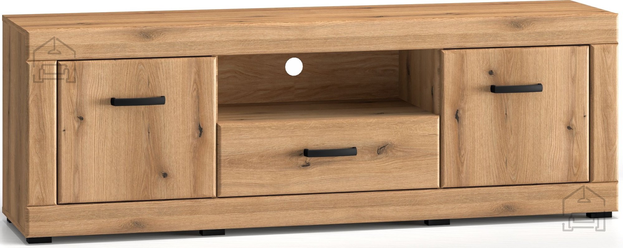 Die TV-Kommode Dora 06 zeichnet sich durch eine elegante Oberfläche in der Farbe Eiche Evoke aus, die jedes Wohnambiente nahtlos ergänzt. Ihre Maße 160x40x55 cm sind durchdacht gestaltet, um sowohl in kleinere als auch größere Räume zu passen, was eine vielseitige Nutzung ermöglicht. MDF und Spanplatte gewährleisten außergewöhnliche Stabilität und Haltbarkeit, was bedeutet, dass diese Kommode Ihren Bedürfnissen viele Jahre lang dienen wird.