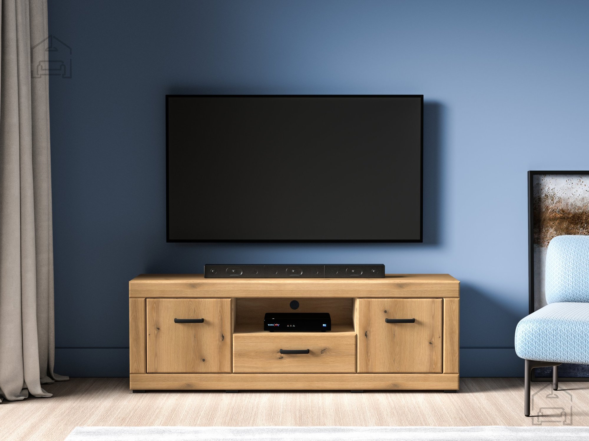 1. Modernes Design: Mit ihrem minimalistischen Design und der natürlichen Optik von Eiche Evoke bringt die TV-Kommode Dora 06 einen Hauch von Modernität und Wärme in Ihr Zuhause.