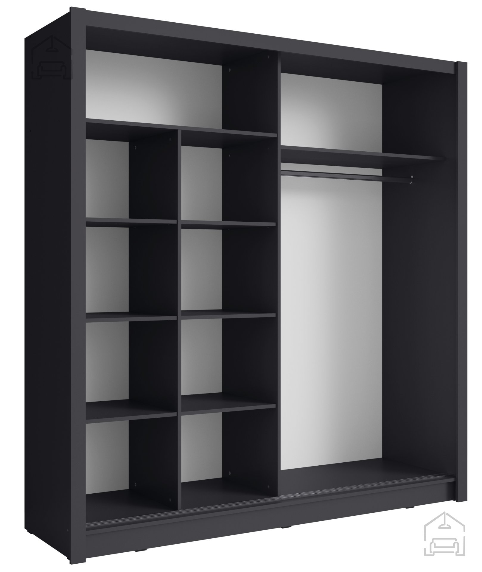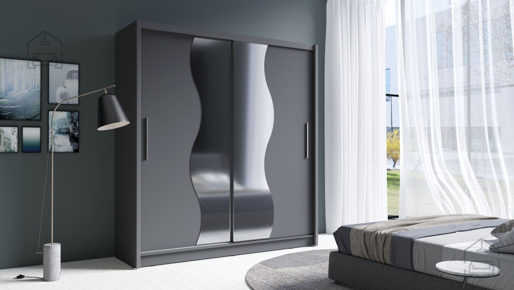 Bergamo I ist aus einer hochwertigen laminierten Platte gefertigt, die außergewöhnliche Haltbarkeit und eine lange Lebensdauer gewährleistet. Die Außenseite des Schranks ist in einer anspruchsvollen Graphitfarbe gehalten, die sich mühelos mit verschiedenen Farbschemata der Inneneinrichtung kombinieren lässt. Darüber hinaus ist er mit einem großen Spiegel ausgestattet, der nicht nur den Raum optisch vergrößert, sondern auch einen Hauch von Raffinesse hinzufügt.