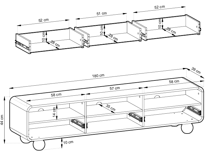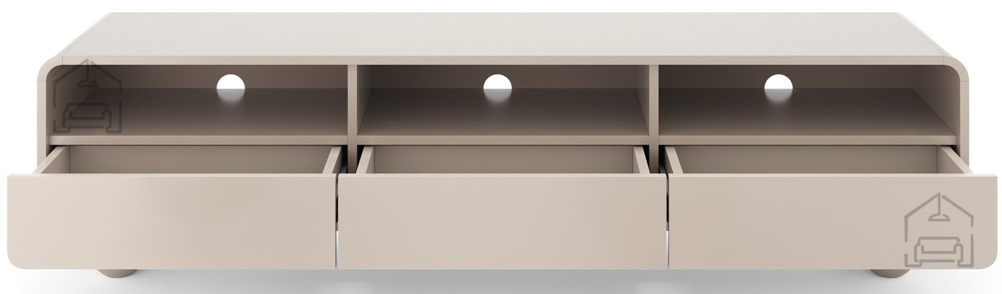 Die TV-Kommode Albion 180 überzeugt nicht nur optisch, sondern auch durch ihre hohe Alltagstauglichkeit. Dank mehrerer Schubladen und offener Ablageflächen bietet sie ausreichend Platz, um Ihre elektronischen Geräte, DVDs, Bücher oder Dekoartikel ordentlich zu verstauen. So bleibt Ihr Wohnzimmer aufgeräumt und alles ist schnell griffbereit.
