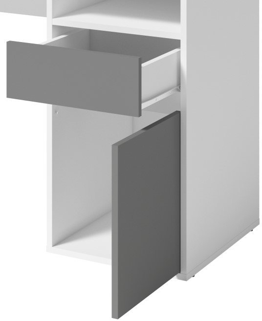 Der Schreibtisch Billa 60 besteht aus einer hochwertigen laminierten Platte, die außergewöhnliche Haltbarkeit und eine lange Lebensdauer gewährleistet. Die Oberfläche des Tisches ist kratz- und fleckenbeständig, was bedeutet, dass sie auch nach jahrelangem Gebrauch ihr makelloses Aussehen behält. Die Kombination aus Weiß und Graphit verleiht einen Hauch moderner Eleganz, die jeden Raum bereichert.