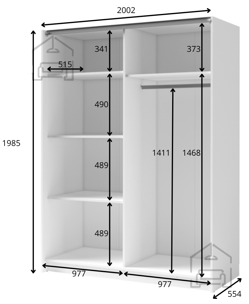 Mit den Maßen 200x63,5x198,5 cm bietet der Schrank Dalia III 12 reichlich Platz zur Aufbewahrung Ihrer Kleidung, Schuhe und Accessoires. Die Schiebetüren ermöglichen einen einfachen Zugang zum Inhalt des Schranks, ohne zusätzlichen Platz im Raum einzunehmen. Dies ist eine ausgezeichnete Lösung für diejenigen, die praktische Lösungen für die Organisation ihres Zuhauses suchen.