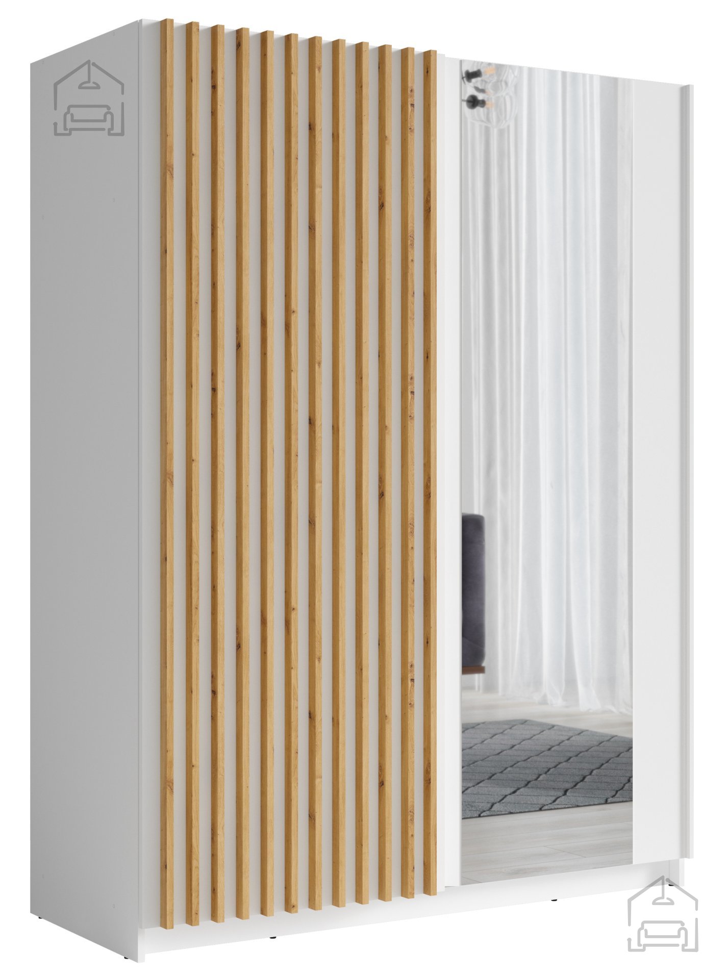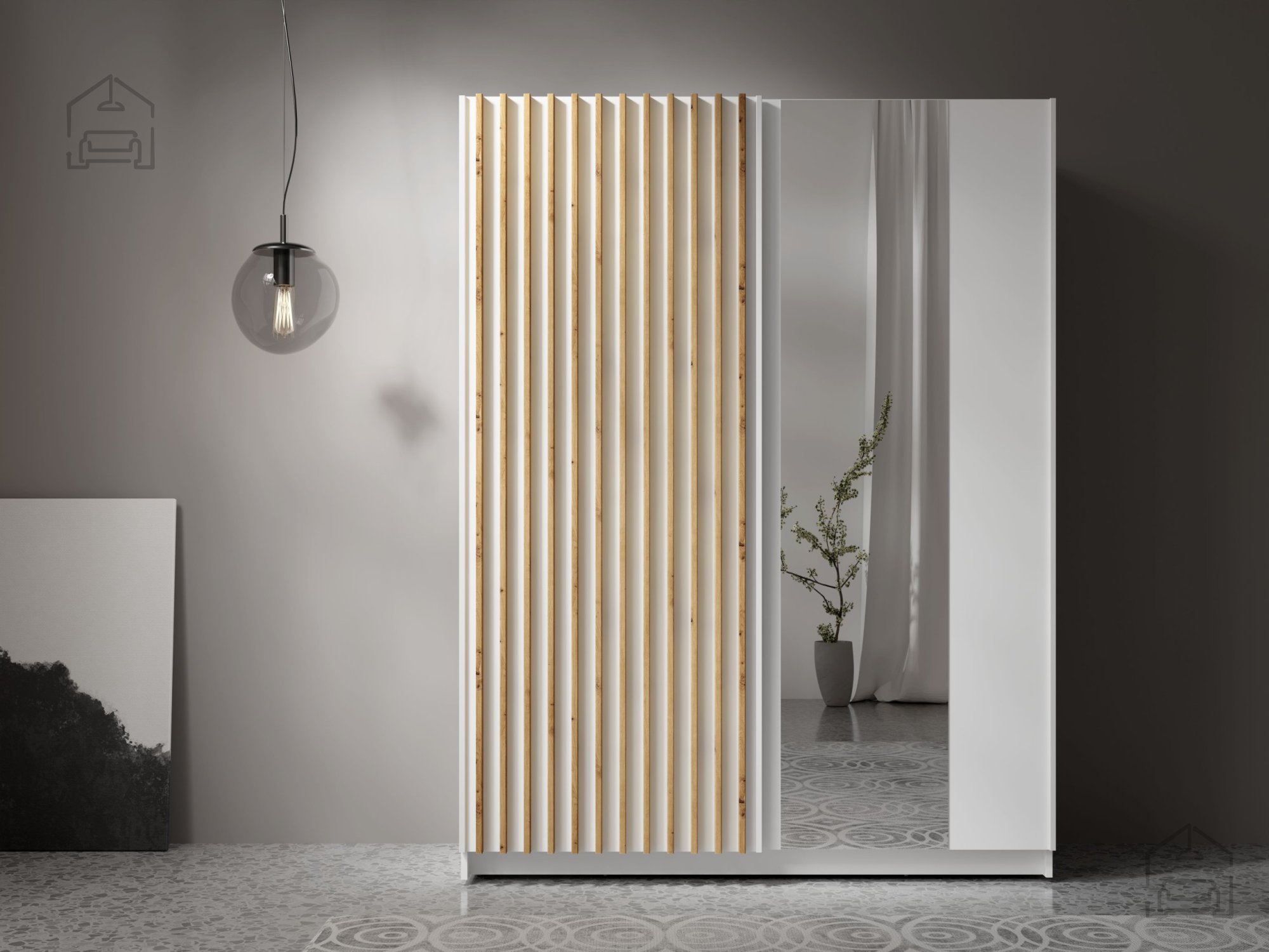 Wir präsentieren Ihnen den Kleiderschrank mit Schiebetüren Dalia III 10, der modernes Design, Funktionalität und hochwertige Materialien vereint. Mit seiner eleganten weißen Farbe und den raffinierten Details aus Artisan-Eiche ist dieser Schrank nicht nur ein praktisches Möbelstück, sondern auch eine ästhetische Ergänzung für jedes Zuhause. Seine Maße von 150,5x63,5x198,5 cm ermöglichen eine optimale Raumausnutzung, unabhängig von der Größe Ihres Zimmers.