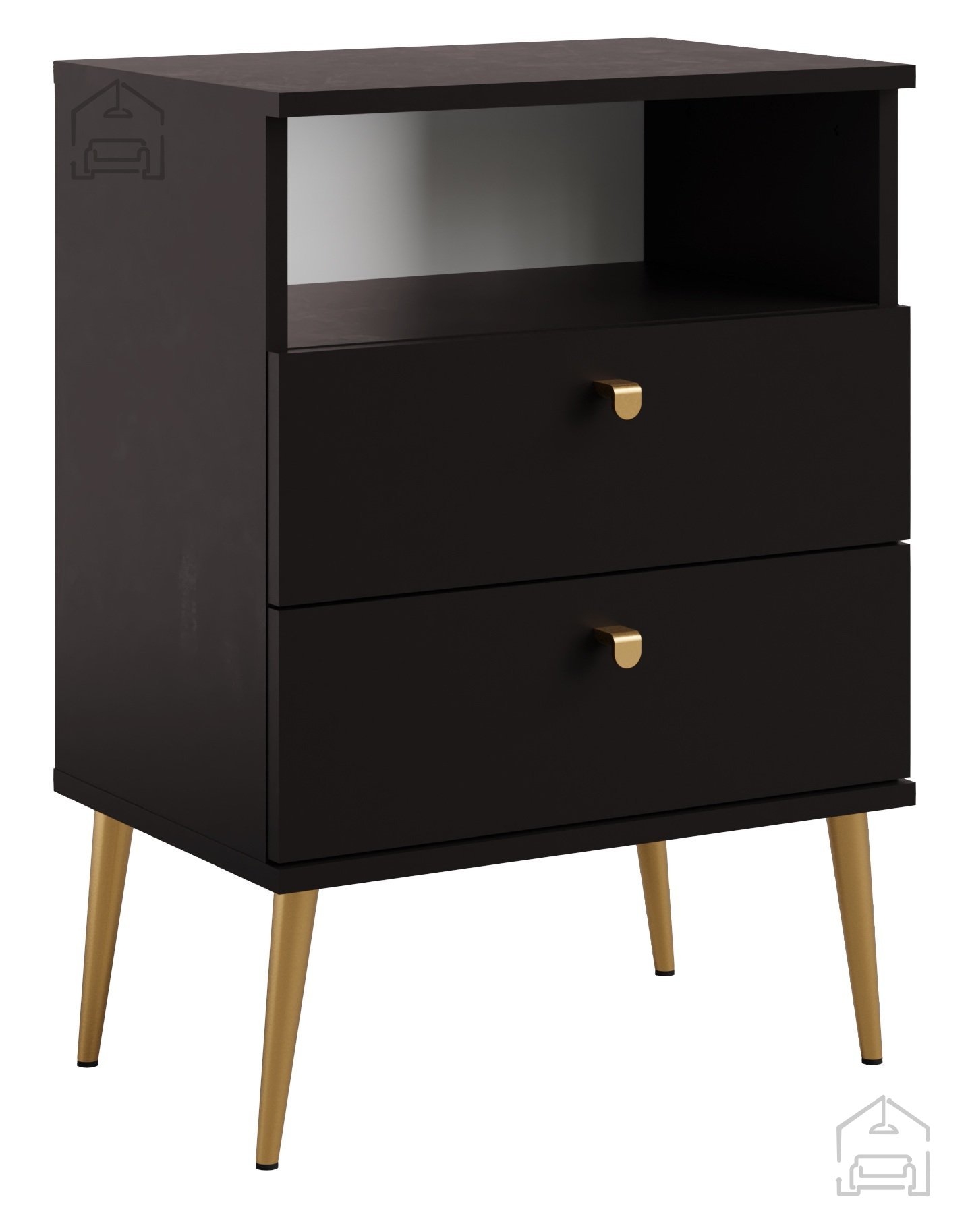 Verleihen Sie Ihrem Schlafzimmer einen Hauch von Luxus und Funktionalität mit einem eleganten Set aus zwei Nachttischen, das modernes Design, hochwertige Materialien und durchdachte Details vereint. Mit ihrer raffinierten schwarzen Farbe, betont durch goldene Metallgriffe und -beine, heben diese Nachttische das Erscheinungsbild Ihres Schlafzimmers im Handumdrehen auf ein höheres Niveau. Eine solche Farbkombination bietet einen zeitlosen Stil, der sich leicht mit verschiedenen Einrichtungsstilen kombinieren lässt – von minimalistisch bis glamourös.