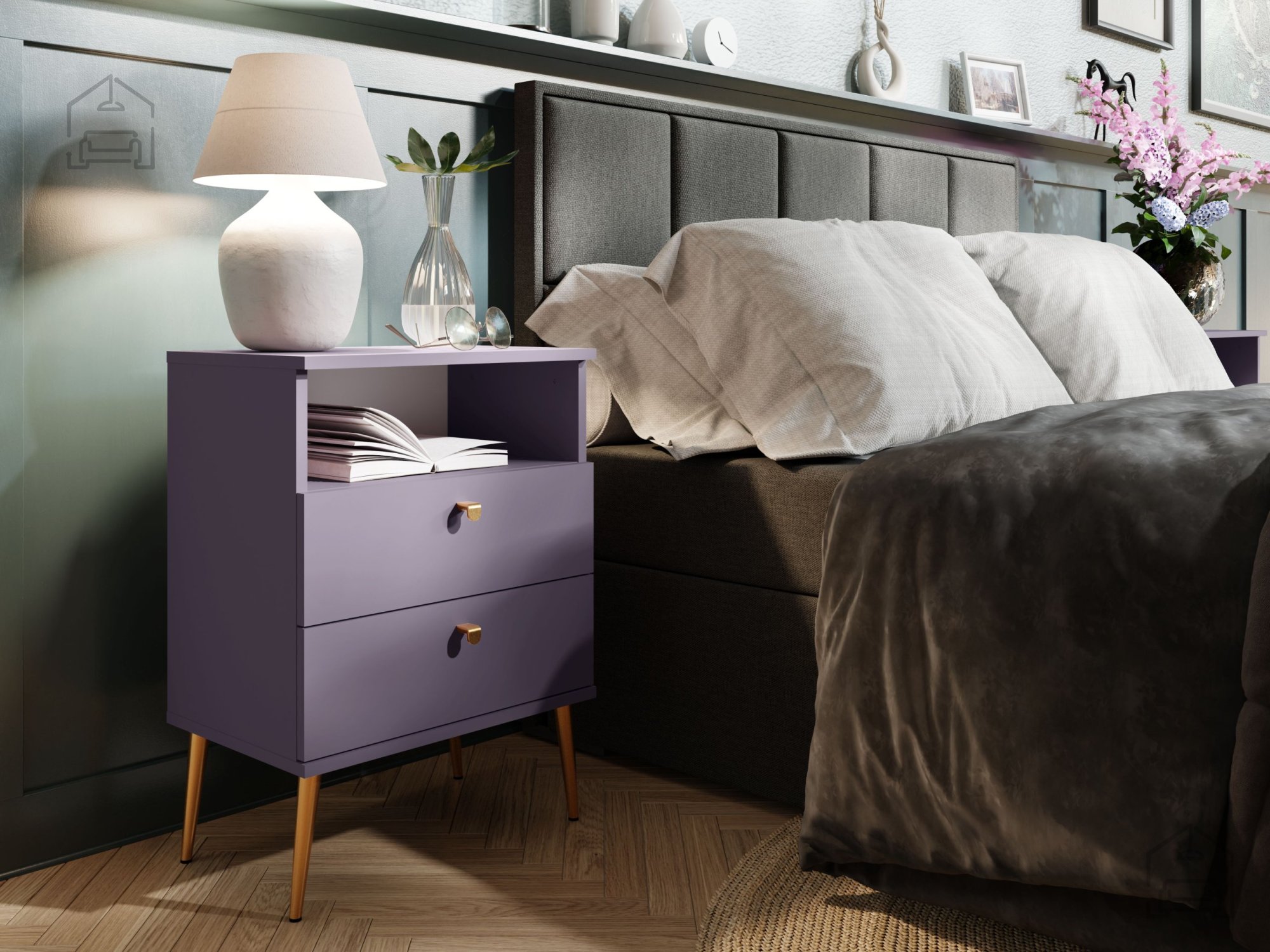 Wenn Sie Nachttische suchen, die Qualität, Funktionalität und ästhetische Perfektion vereinen, dann ist dieses Set die richtige Wahl für Sie. Damit bringen Sie die Wärme von natürlichem Holz im Pflaumenton, einen Hauch von Glamour durch goldene Metalldetails und eine zuverlässige Konstruktion in Ihr Zuhause, die viele Jahre lang dienen wird. Lassen Sie Ihr Schlafzimmer ein Ort sein, an dem sich Komfort und Schönheit vereinen – wählen Sie klug und gestalten Sie Ihr Zuhause nach Ihren Vorstellungen.