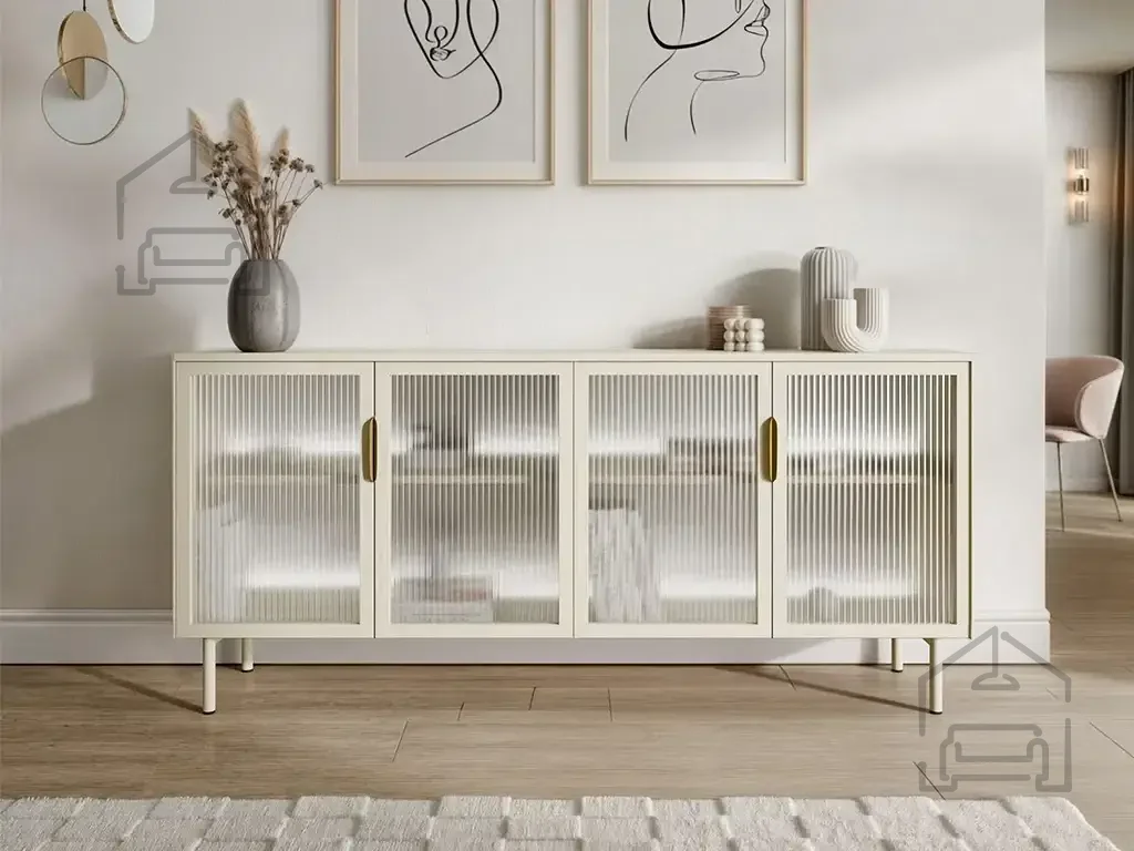 Wenn Sie Ihrem Zuhause die Wärme der Kaschmirfarbe, die Eleganz dekorativer Details und die Praktikabilität eines durchdachten Designs verleihen möchten, ist diese Kommode die perfekte Wahl. Sie vereint Ästhetik und Funktionalität – Eigenschaften, die ein modernes Zuhause braucht. Egal, ob Sie sie als Stauraum für Geschirr und Besteck, als Vitrine für Dekorationsobjekte oder als elegantes Möbelstück im Eingangsbereich verwenden, sie wird immer Blicke auf sich ziehen und Ihrem Ambiente Wert verleihen.