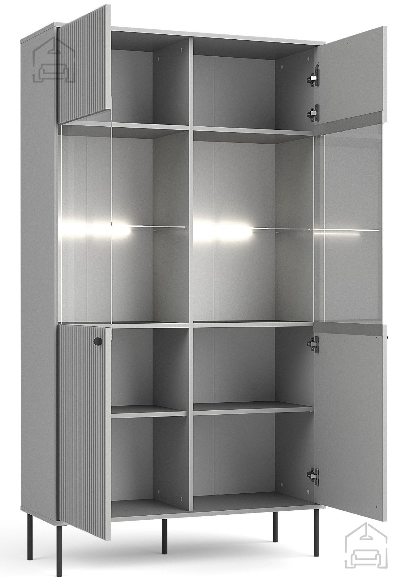 Verschönern Sie Ihr Zuhause mit einer eleganten und funktionalen Vitrine, die modernes Design, erstklassige Verarbeitungsqualität und praktische Aufbewahrung vereint. Dieses äußerst ästhetische Möbelstück wird zum Mittelpunkt der Aufmerksamkeit im Wohnzimmer, Esszimmer oder sogar im Büro. Mit seiner raffinierten grauen Farbe und klaren Linien fügt es sich mühelos in verschiedene Einrichtungsstile ein – von minimalistisch bis klassisch.