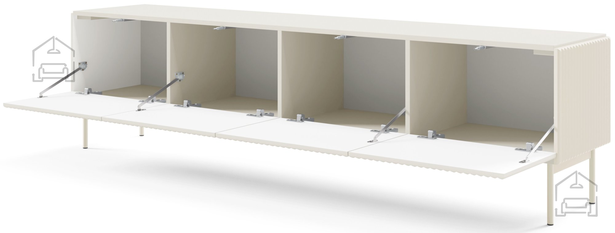 Eine elegante und moderne Lösung für Ihr Wohnzimmer, die erstklassige Ästhetik, Funktionalität und hochwertige Verarbeitung vereint. Mit ihrer raffinierten Farbe Kaschmir und den modernen Linien wird dieses Möbelstück zum zentralen Element Ihres Wohnzimmers und sorgt gleichzeitig für einen ordentlichen und übersichtlichen Raum. Die Maße 195,2 x 39,8 x 51,2 cm ermöglichen, dass die Kommode ausreichend Stauraum für Multimedia-Ausrüstung, Bücher, Dekorationen oder andere Gegenstände bietet, die Sie in Reichweite haben möchten.