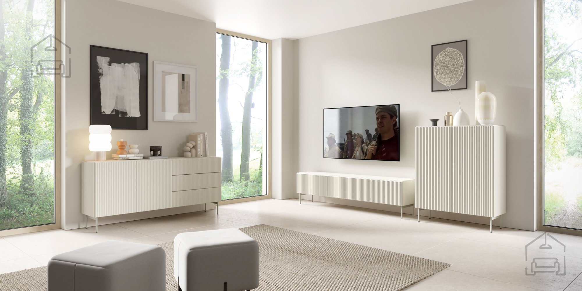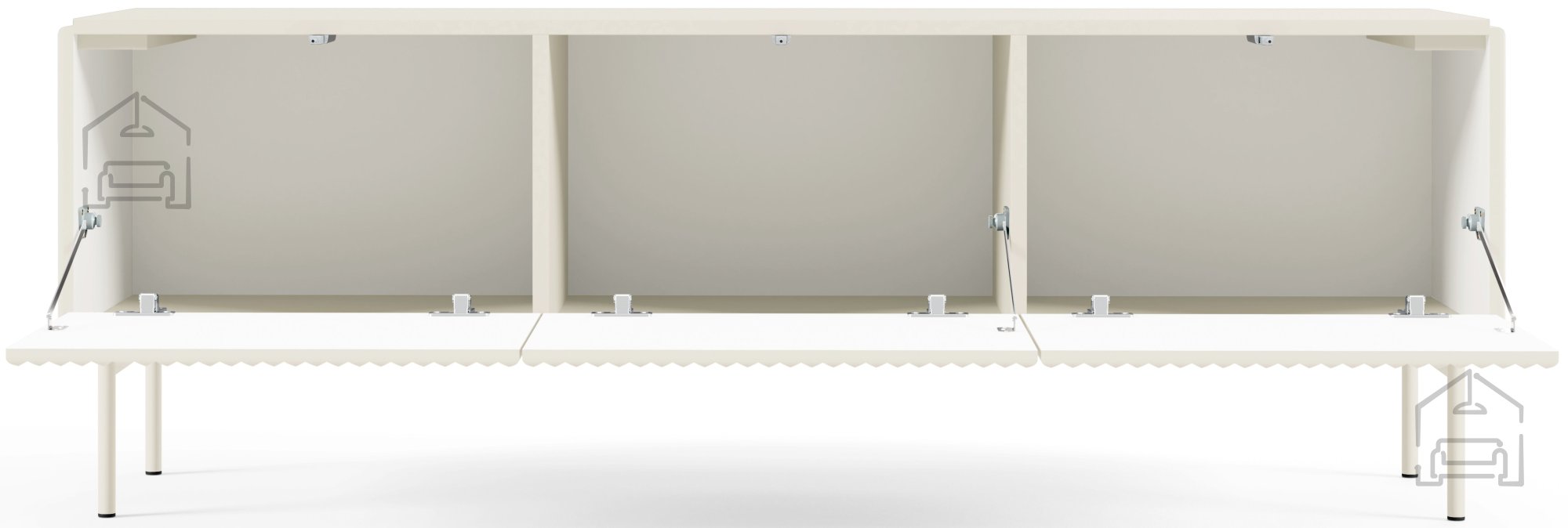 Geräumige Aufbewahrungsflächen sorgen dafür, dass Ihr Wohnzimmer stets ordentlich bleibt. Schubladen mit Kugellagern und Vollauszug ermöglichen ein sanftes und leises Öffnen sowie einen vollständigen Überblick über den Inhalt. Doppelscharniere an den Türen sorgen für ein stabiles und sicheres Öffnen, unabhängig davon, wie oft Sie die Kommode benutzen. Dank der durchdachten Innenaufteilung haben Sie genügend Platz für alles – von Multimedia-Geräten bis hin zu Dekorationsgegenständen.