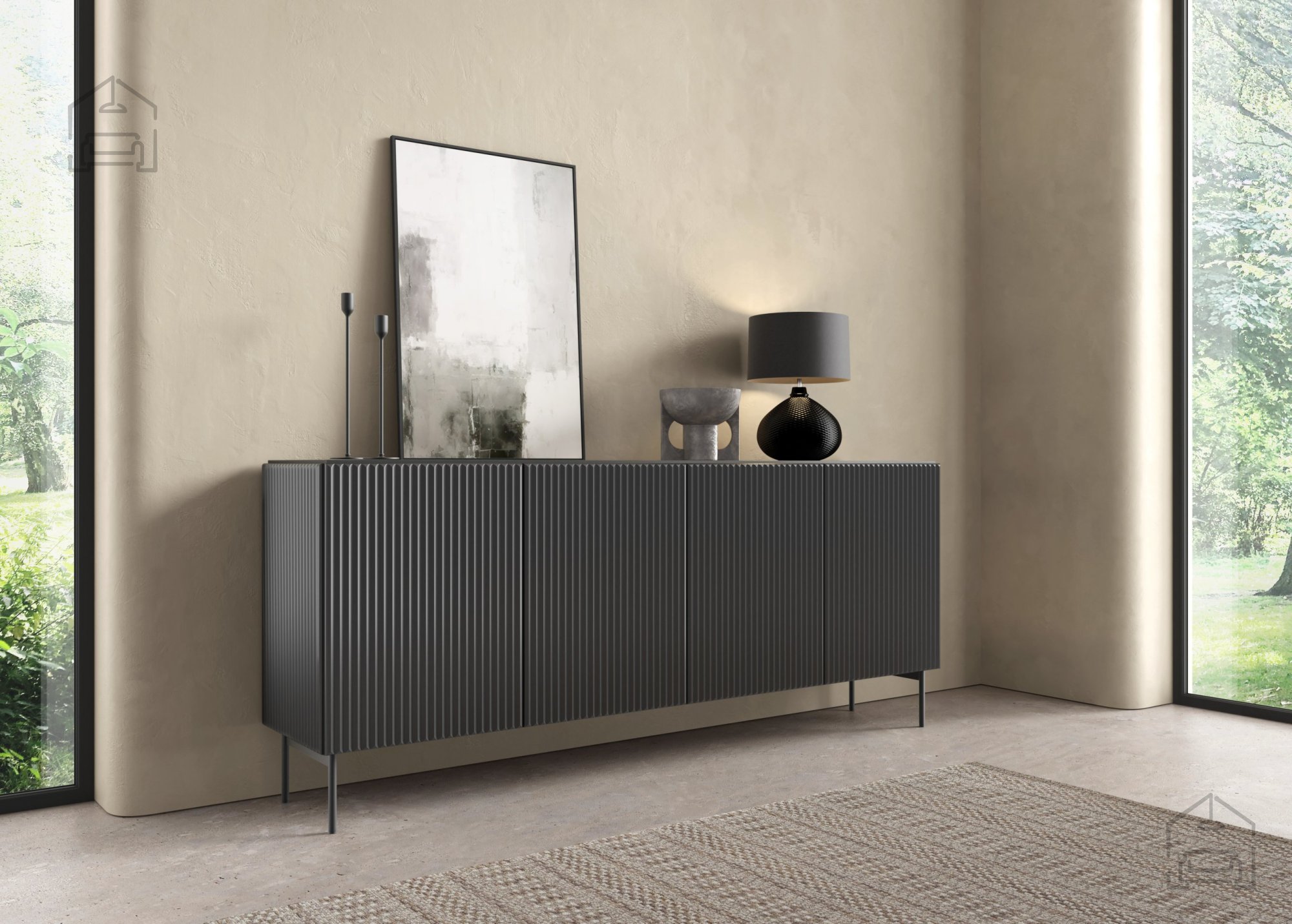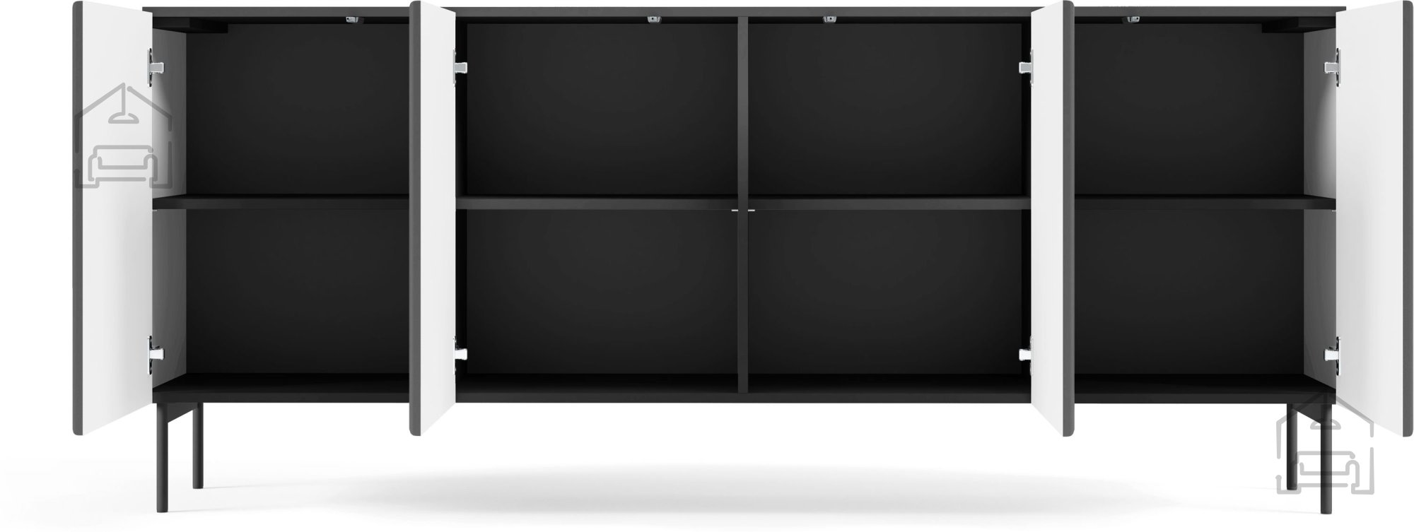 Suchen Sie ein Möbelstück, das gleichzeitig modern, elegant und äußerst funktional ist? Diese Designerkommode in tiefem Schwarz vereint eine minimalistische Ästhetik mit hochwertiger Verarbeitung und ist die perfekte Wahl für jedes Zuhause, das Stil und Praktikabilität verbinden möchte. Mit ihrem anspruchsvollen Erscheinungsbild wird sie zum zentralen dekorativen Element im Wohnzimmer, Esszimmer, Schlafzimmer oder sogar im modernen Büro. Ihre klaren Linien und die zeitlose Farbe passen hervorragend zu verschiedenen Einrichtungsstilen – von industriell über skandinavisch bis klassisch.