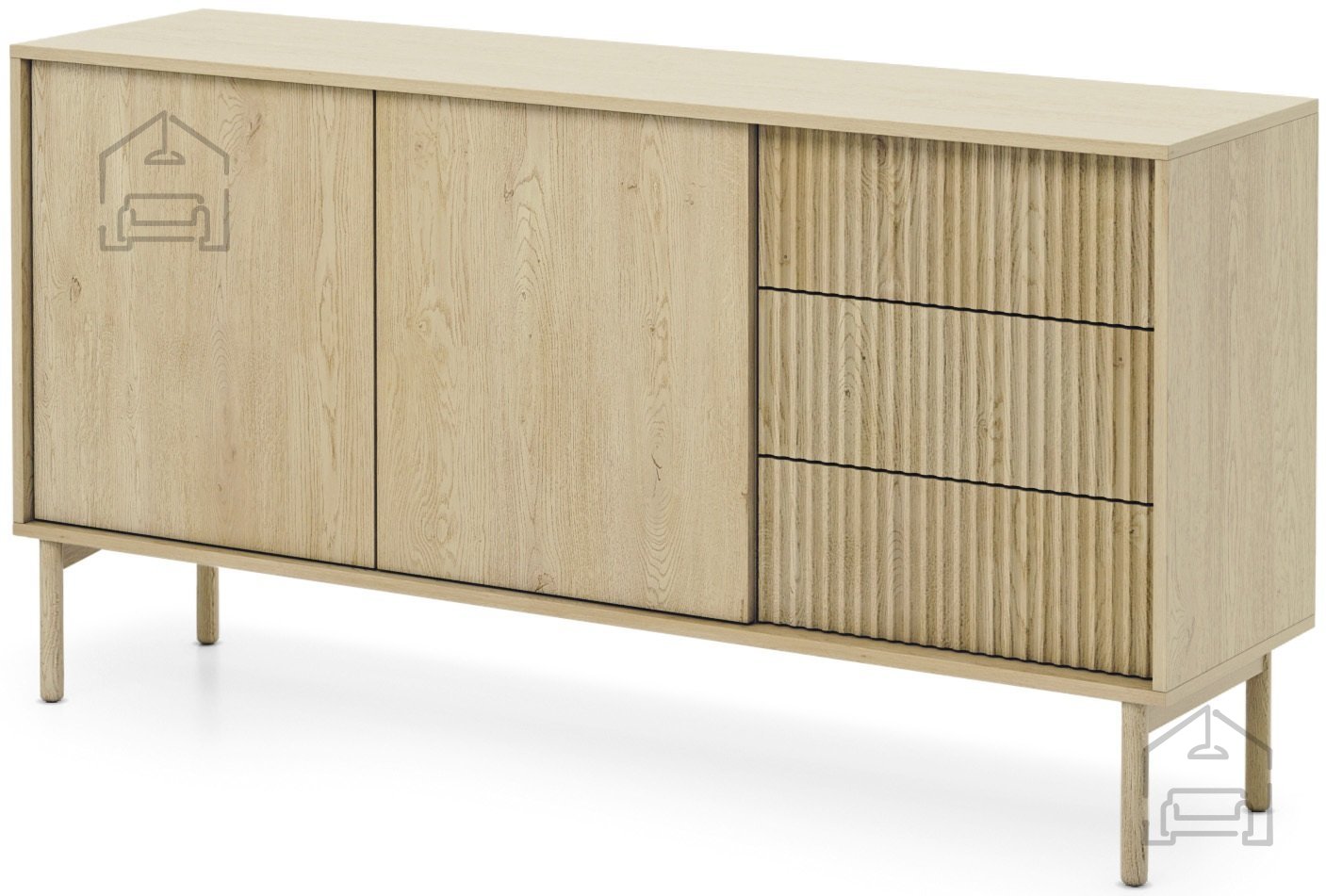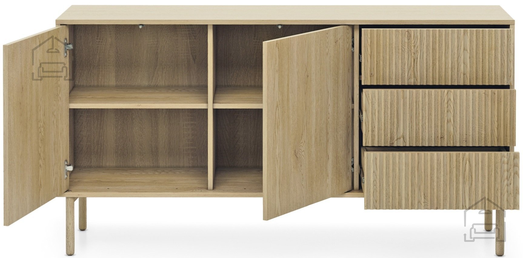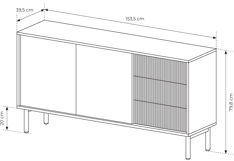 Mit ihren Abmessungen von 153,5 × 39,5 × 79,8 cm bietet sie ausreichend Stauraum, ohne dabei zu viel Platz im Raum einzunehmen. Vier geräumige Schubladen und Schränke ermöglichen es Ihnen, Ihre Sachen übersichtlich und zugänglich zu organisieren – von Geschirr und Tischdecken im Esszimmer bis hin zu Dokumenten und Accessoires im Wohnzimmer oder Büro. Das sanfte Schließen und das Öffnen durch Druck sorgen für eine bequeme und leise Nutzung ohne störendes Klappern.