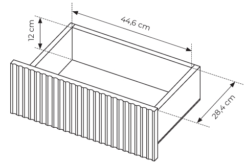 Der Korpus besteht aus laminierter Spanplatte E05 mit einer Stärke von 16 mm, die kratzfest und leicht zu reinigen ist. Die Front aus gefräster MDF-Platte (18 mm) in Kombination mit laminierter Spanplatte sorgt für zusätzliche Stabilität und ein ästhetisch vollendetes Erscheinungsbild. Der warme Farbton der Eiche Cremona in Kombination mit ABS-Kanten in der Farbe der Platte schafft ein Gefühl von Natürlichkeit und Behaglichkeit und bietet gleichzeitig Schutz vor Kantenschäden.