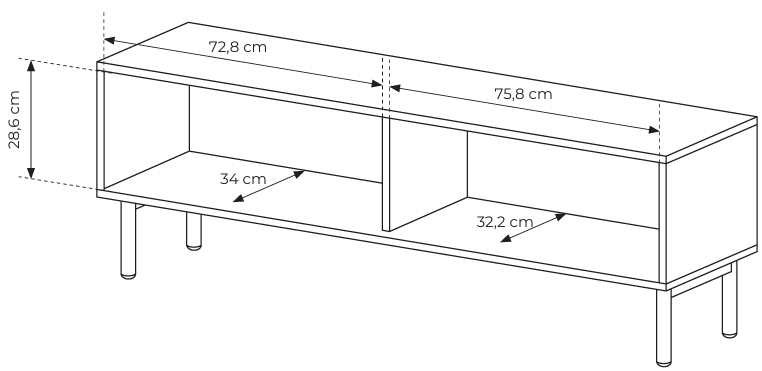 Mit ihren Maßen von 153,5 x 39,5 x 51,8 cm ist die Kommode geräumig genug, um auf der oberen Fläche einen größeren Fernseher zu platzieren, während im Inneren Multimedia-Geräte, Filme, Bücher oder dekorative Accessoires verstaut werden können. Die Organisation von Kabeln und Geräten wird einfach sein, sodass Ihr Wohnbereich stets ordentlich und angenehm zum Entspannen bleibt.