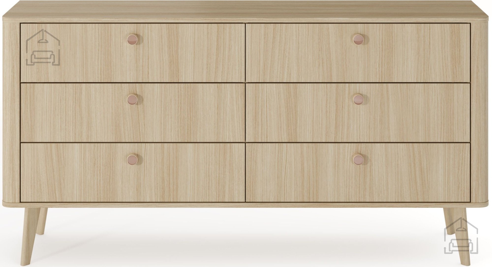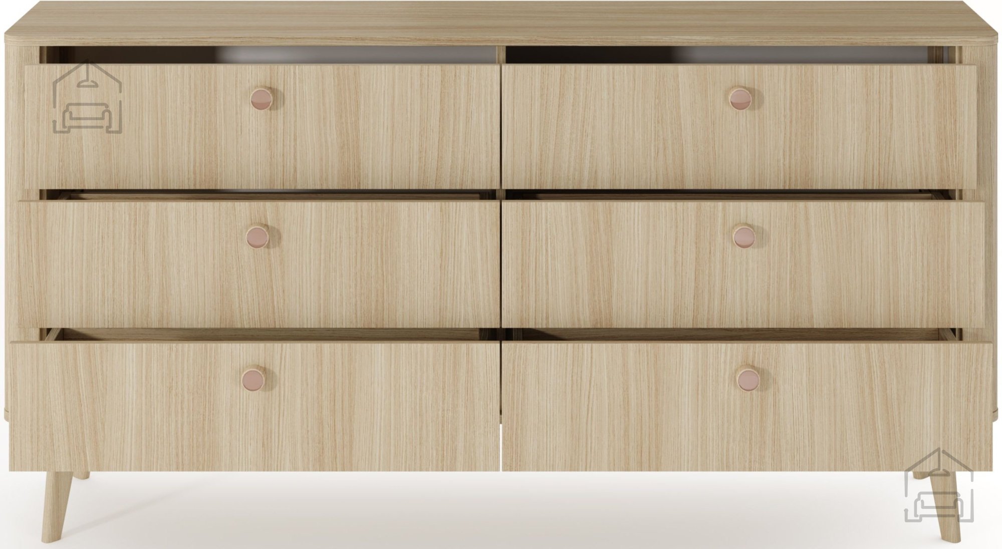 Ganz gleich, ob Sie Ihr Wohnzimmer, Esszimmer, Schlafzimmer oder Ihren Flur einrichten – diese breite Kommode fügt sich perfekt in Ihren Raum ein. Ihr vielseitiges Design und durchdachte Funktionen sorgen dafür, dass Sie in ihr einen zuverlässigen Helfer für die Organisation Ihres Zuhauses finden. Die warme Holzfarbe verleiht dem Raum natürlichen Charme, während die modernen Linien dafür sorgen, dass sie mit den Trends der Innenarchitektur Schritt hält.
