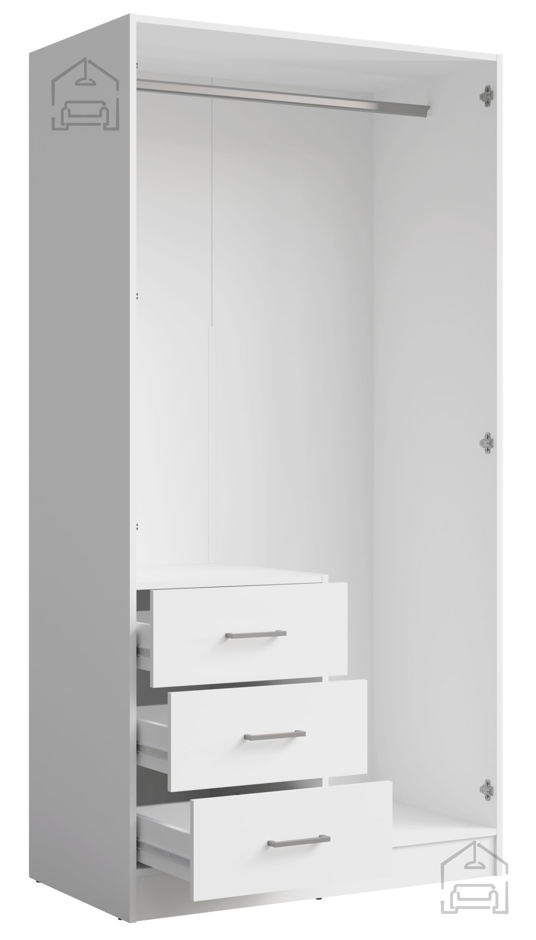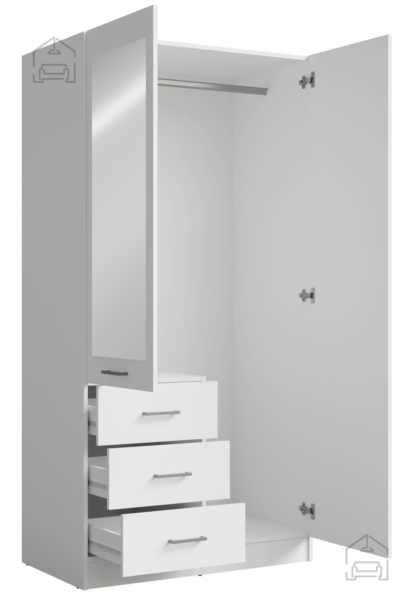 Bringen Sie Frische, Eleganz und Praktikabilität in Ihr Zuhause mit einem äußerst funktionalen Kleiderschrank, der modernes Design und durchdachte Innenaufteilung vereint. Mit seiner zeitlosen weißen Farbe passt er perfekt in jedes Ambiente – von minimalistisch bis klassisch – und vergrößert den Raum optisch, während der eingebaute Spiegel einen Hauch von Raffinesse und alltäglicher Praktikabilität hinzufügt. Dieser Schrank ist nicht nur ein Möbelstück, sondern eine intelligente Lösung für ein ordentliches und ästhetisch vollendetes Zuhause.