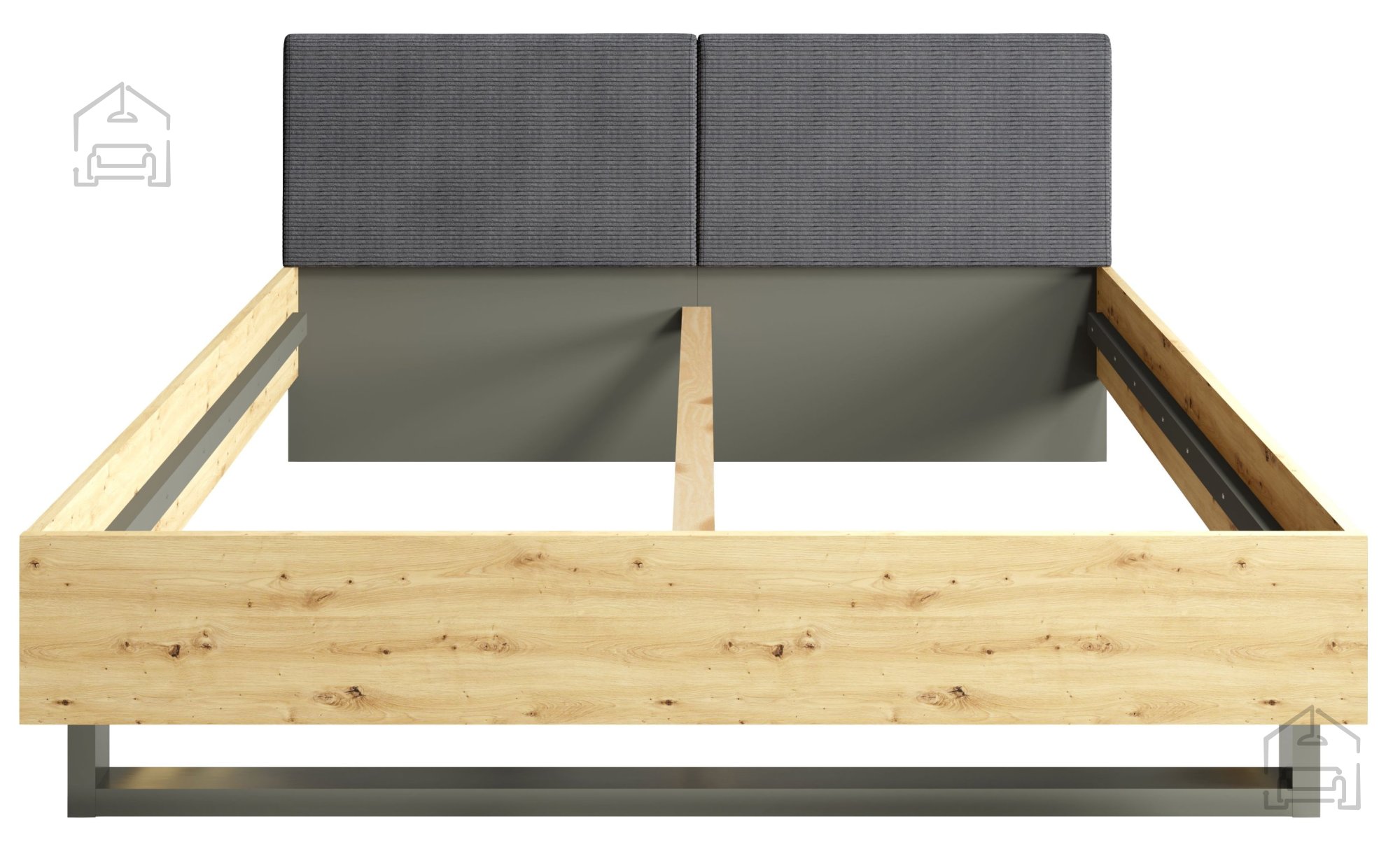 Dieses Modell ist für alle konzipiert, die in ihrem Zuhause Ästhetik und Praktikabilität vereinen möchten. Das Bett besteht aus einer strapazierfähigen laminierten Platte mit einer Stärke von 16 mm, was eine lange Lebensdauer und Widerstandsfähigkeit gegen den täglichen Gebrauch gewährleistet. Besonderes Augenmerk zieht das gepolsterte Kopfteil aus Stoff Ontario 19 auf sich, das angenehme Unterstützung beim Lesen, Fernsehen oder Entspannen vor dem Schlafengehen bietet. Die weiche Textur des Stoffes in einem grau-graphitfarbenen Ton schafft ein Gefühl von Wärme und betont zusätzlich die Eleganz des gesamten Möbelstücks.